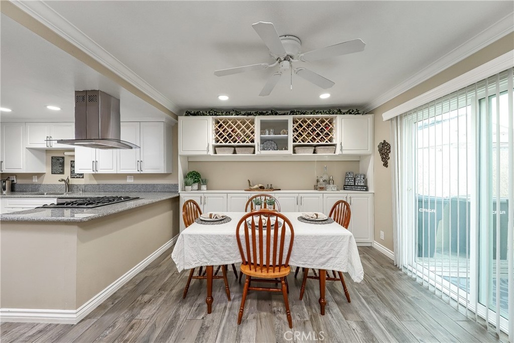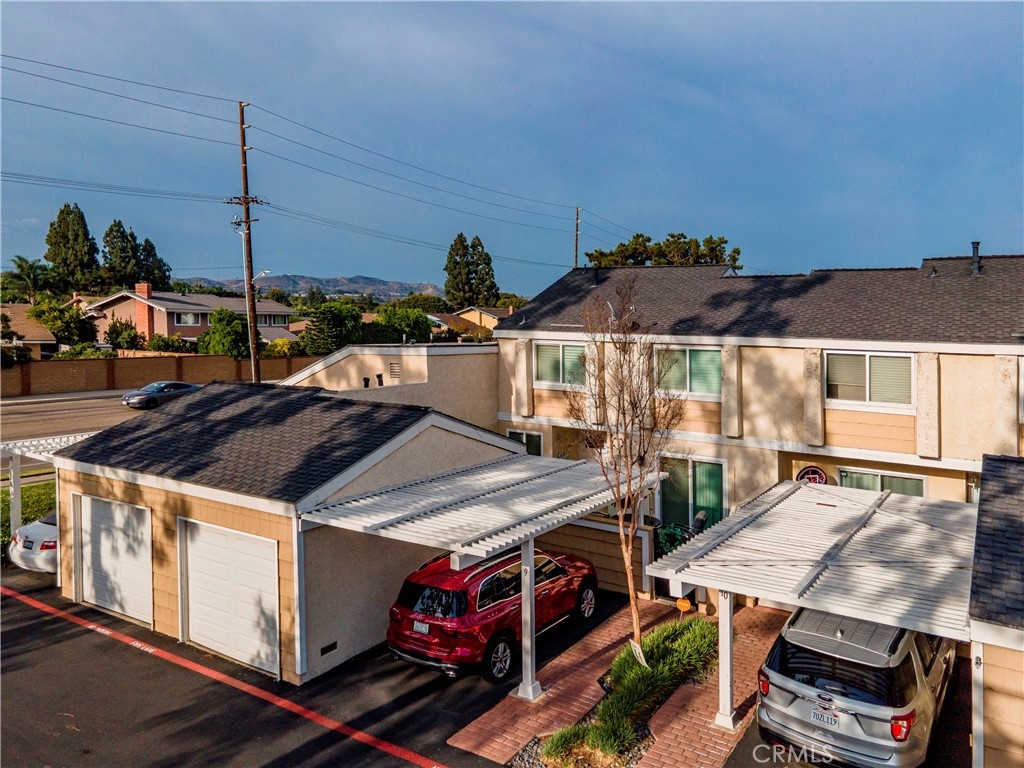 Located adjacent to the very prestigious neighborhoods of Villa Park and Orange Park Acres, and near the 241/261 toll road and 55/22 freeways. This beautifully appointed 3 bed, 2.5 bath Townhome in Orange is completely turnkey. One of the largest floorplans in the Arroyo Santiago Community. Garage is already setup with a Tesla charger that can be easily converted to another Electric Vehicle charger if needed. The spacious patio is great for entertaining or enjoying a glass of wine at sunset. A rear greenbelt is perfect for small children or pets, and the property is a short walking distance to the community pool. The property has been completely remodeled with an extended kitchen, granite counters, and a stainless-steel drop hood that flows seamlessly into the dining area with a custom-built hutch. The kitchen also includes expanded drawer space in the wall and a custom pantry utilizing the negative space under the stairway. Stainless Steel appliances give the kitchen a modern touch with scraped ceilings and recessed LED lighting throughout the home. New windows, doors, and plantation shutters help insulate the home while the new HVAC system with an oversized compressor, new duct work and heat-activated attic fan help keep the home cooler and reduce electricity costs. All new tile downstairs with wood-like finish provides the home with a beautiful aesthetic while also providing a durable and easy to clean surface. Laminate flooring up the stairs and throughout the second floor help complete the look of the home. The property also includes upgraded electrical and plumbing, a whole house water softener system, custom closet organizers, and a $3,000 Vivant Smart Home System with doorbell camera, interior camera, alarm, and smart house controls. Located within school district boundaries for the highly rated schools of Villa Park High School and El Modena High School (Buyer to verify school district boundaries). Don?t miss the opportunity to see this masterpiece!