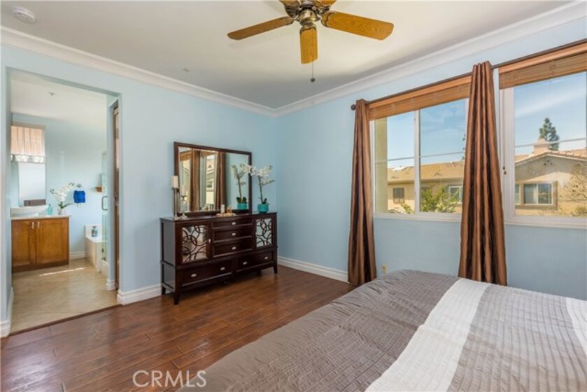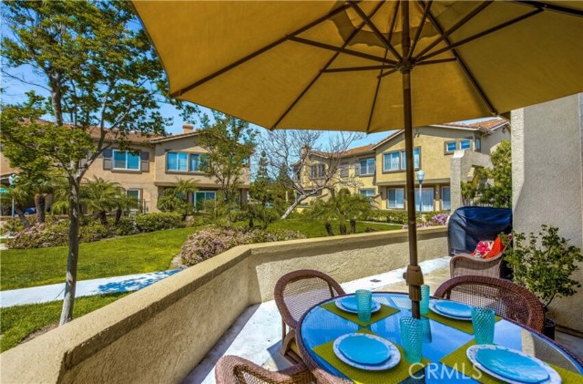 Nestled in the gated community of Cambridge Creek, this home has an ideal interior location, overlooking a large greenbelt area. Enter the home into the spacious living & dining areas, where the fireplace with mosaic tile surround & rich wood mantle, is the centerpiece of the room. Crown molding & recessed lighting complement the room. The open floorplan is perfect for entertaining family & friends or just everyday living. Over-sized sliding door in the dining area opens to spacious patio area, extending your indoor living outdoors. Enjoy the lush greenbelt views while hosting a BBQ. The remodeled kitchen features updated crisp white cabinetry, leathered granite counters & stainless steel appliances. Fresh paint & wood-style flooring add a sense of continuity to your main level living space. A separate laundry room & powder room complete the main level. Direct access two car garage, has an abundance of built-in storage. Upstairs, the master suite features crown molding & ceiling fan. Remodeled master bath offers updated dual vanities with vessel sinks, separate tub & shower, as well as a large walk-in closet with built-ins. Large secondary bedrooms are separate from the master, offering the utmost in privacy. Open loft area is perfect for home office, den or playroom. Updated hall bath completes the second level. Just steps to the association pool & a short walk to nearby neighborhood parks. No Mello Roos, low HOA & low tax rate of 1.14% make this a great value. Welcome Home!