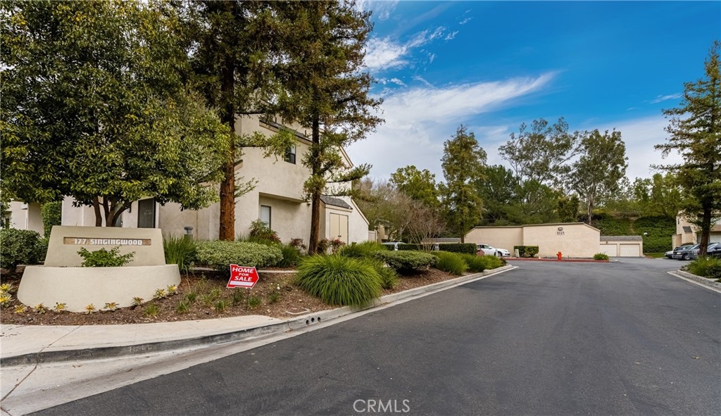 Welcome to 177 N Singingwood Street #15, a private end unit townhome with one shared wall located in the Villeurbanne community of Orange. This dream home boasts three bedrooms, two and a half bathrooms, newer carpet, porcelain tile, and views of Orange Hills. The family room enjoys a grand fireplace and laminate floors with a half bathroom adjacent for convenience. The spacious kitchen features modern tile, stainless steel appliances and a large dining area overlooking the patio with tree views. The kitchen and dining area enjoy slider access to the patio. Off the kitchen, is a separate laundry room. The staircase is inviting with tons of natural light with a skylight and large window. Upstairs you will find all 3 bedrooms with ceiling fans and 2 bathrooms. The private master enjoys a large, mirrored closet and en-suite bathroom. This unit’s one car garage is detached and just a few steps from the unit. With ample parking for your guests, you’ll enjoy the community’s resort style pools, jacuzzi, picnic tables, gas grills and clubhouse. HOA includes water and trash. Great nearby hiking areas include Irvine Regional Park, Peter's Canyon and Santiago Oaks Parks. Easy access to 55 and 22 Freeways and 241 & 261 Toll Roads. This home won’t last, come and see why!