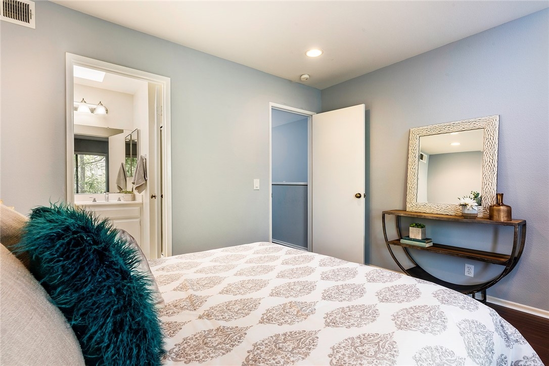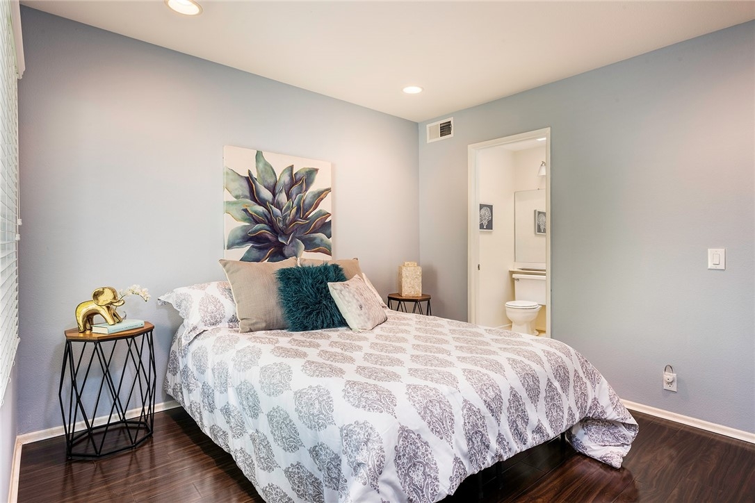 Welcome to a wonderful community! This home is located in a great location at the end of a cul-du-sac with plenty of parking. This 2 story, 2 bedroom, 2 1/2 bath home is move-in ready. The downstairs features a living room with new recessed lighting, a spacious redone kitchen with newer cabinets and counters, a dining area and half bath. The sliding glass door leads to a lovely private patio for BBQing and enjoying the sun. Upstairs features 2 master bedrooms, each with their own bathrooms. There is a stackable washer/dryer in the upstairs hallway so you won't have to carry your laundry up and down the stairs. There is a 1 car garage and 2 parking passes available. The HOA provides several pools for your enjoyment, along with a club house if you want to entertain a group. Enjoy resort style living, with easy access to hiking trails, biking, walking, shopping, restaurants and other amenities.