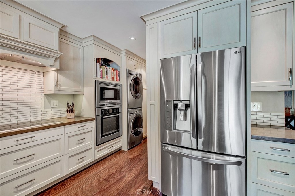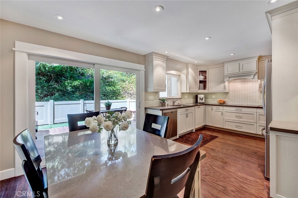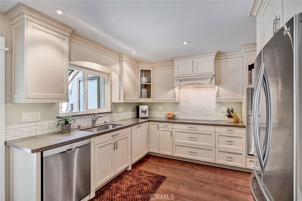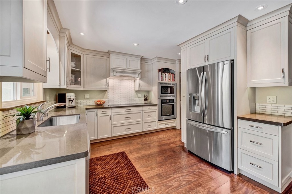 Located in the Villeurbanne Community of Orange, 307 N Singingwood Street #20 is an Immaculate Turnkey Three Bedroom, Two and a Half Bathroom End Unit Townhome. Enjoy Upgrades Galore Including a Gourmet Kitchen, Engineered Wood Floors, Dual-Pane Windows, Large Baseboards, Upgraded Interior Doors, Nature Views, and Ample Natural Light Throughout. The Light and Bright Custom Kitchen Displays Ample Counter and Cabinet Space, Quartz Counters, Soft-Close Cabinets, Tile Back-Splash, Stainless Steel Appliances, Electric Stove with Hood, Built-In Bosch Oven and Microwave, Crown Molding, Recessed Lighting, Pantry, and Dining Area. The Kitchen and Dining Area Enjoy Slider Access to the Patio Which is Perfect for Entertaining. The Cozy Family Room Showcases a Remodeled Fireplace. The Private Master Suite Enjoys Nature Views and a Remodeled Bathroom Showcasing a Walk-In Shower. Indoor Laundry Area. Walking Distance to Community Amenities Which Include: Resort Style Pool, Spa, Club House, Creeks, Trash, and Water. Short Drive to Orange Hill Restaurant, Old Town Orange, Irvine/Peters Canyon Regional Parks, Shopping, and Dining. Easy Access to the 55/22/91 Freeways and 241/261 Toll Roads. 307 N Singingwood Street #20 is a Must See!