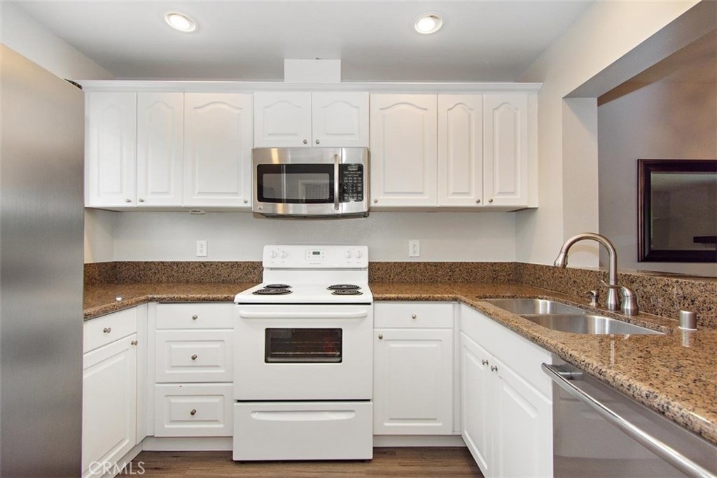 Back on the Market! Perfect opportunity for you! This newly remodeled 2-bedroom, 1-1/2 bathroom home is perfect for the first-time homeowner. As you enter, the new Luxury vinyl floors lead you to a remodeled kitchen with granite countertops and into a dining area and living room, with direct access to a cozy back patio. The home features indoor laundry and two upstairs bedrooms beautifully illuminated by two skylights. It is conveniently located on the East side of Orange, with access to local amenities and three regional parks. Act quickly. This one will not last!