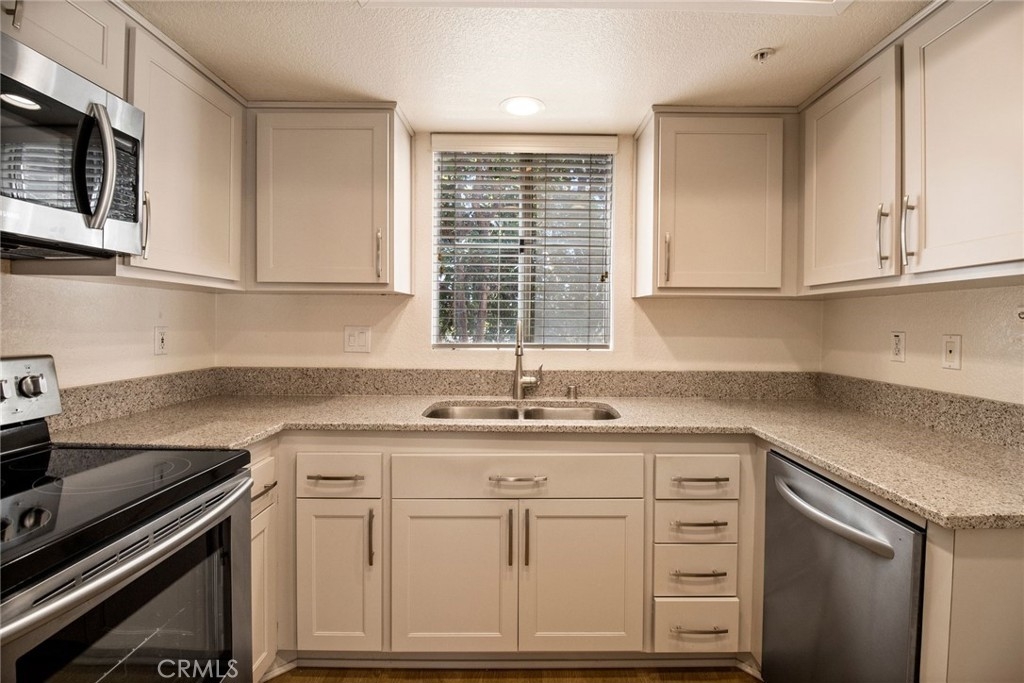 Charming 2 bedroom, 2 bathroom, single story condo in the highly sought after community of Canyon Hills in Orange! Enjoy this upper floor unit with an upgraded kitchen and balconies. The kitchen offers granite countertops, white wood cabinetry, stainless steel appliances, laminate flooring, and opens to the dining area. The primary bedroom features a balcony and a shower-in-tub in the primary bathroom. Additional property features include a laundry closet, a 1 car garage, and a private front deck. Community amenities include the swimming pool, a spa, a gym, and a clubhouse. Convenient to freeways, Irvine Regional Park, and shopping center!
