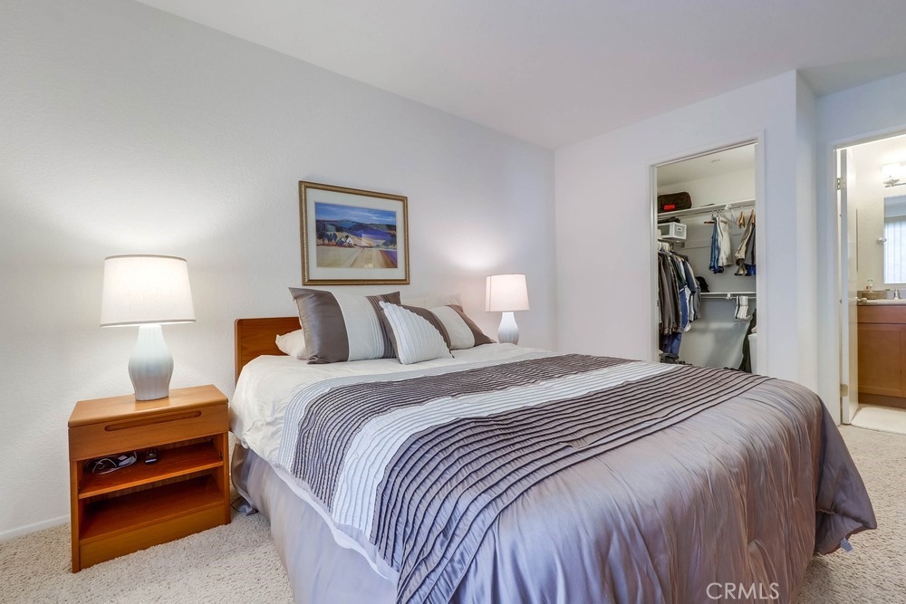 Gorgeous 2 bedroom 2 bathroom Condo located in Orange! Upstairs unit with one car detached garage and an end unit for privacy. Nice shutters and blinds, As you walk in a spacious patio welcomes you in. You will notice the hardwood flooring throughout and a large dining room filled with natural light. Updated kitchen countertops and cabinets with refrigerator included! Upgraded AC unit and a stackable washer and dryer also included! The bathroom in the hall is upgraded and has an immaculate shower stall. The second bedroom has built-in bookshelves! The master bedroom is large with a private deck, walk-in closet, and an upgraded full bath! This property is one you don't want to miss!