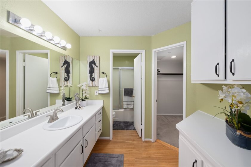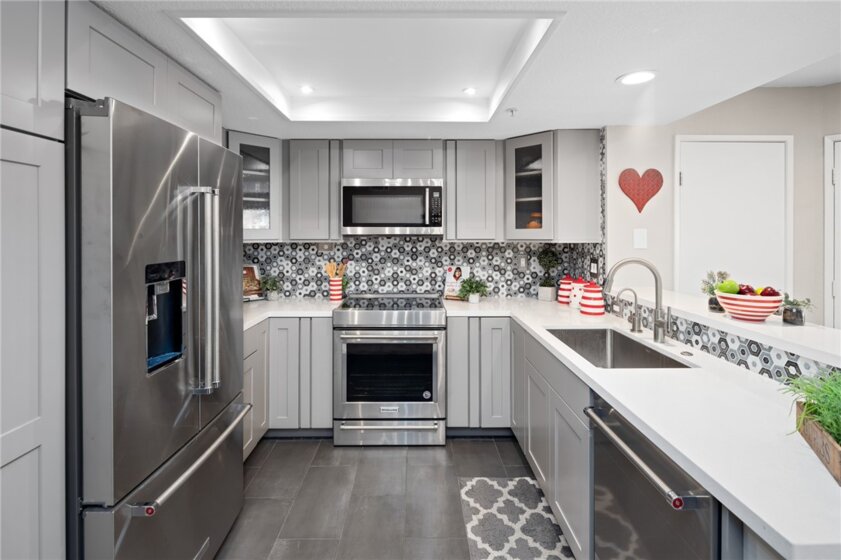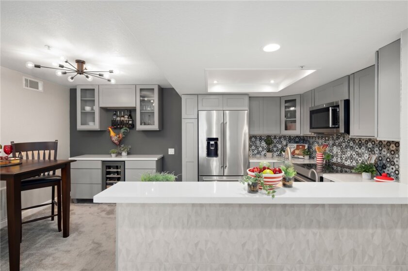 Welcome home! Located in the lovely Canyon Hills community in the Santiago Hills sits 148 N. Mine Canyon Road, Unit H. This remodeled second floor condo has 1 bed, 1 bath, 740 sq ft of living space and is tucked into a quiet part of the neighborhood. Step inside this well-designed open concept space with the living room, kitchen and dining room seamlessly flowing into one another. The kitchen has been recently remodeled with high end touches including: quartz countertops, recessed lighting, custom designer geometric backsplash, Thomasville dove gray shaker cabinets, Kitchenaid stainless steel induction range with warming drawer, quiet Kitchenaid dishwasher, quick hot water dispenser, microwave, and comfortable breakfast bar. Just off the kitchen is your living room, made light and bright by the large sliding glass door leading to your private patio. Rounding out the floor plan is the comfortably sized bedroom, complete with a ceiling fan, en suite bathroom, huge walk-in closet and its own sliding glass door to the patio. Conveniently, the home features an indoor laundry closet with room for a stackable washer and dryer. Other items to note include, newer plush, neutral carpet, upgraded baseboards, plantation shutters, gas water heater and air conditioning. Outside the home find two additional outdoor storage closets and a large single car garage plus plenty of community parking. Not to mention two community pools, spas, a gym and clubhouse for you to enjoy. Nestled between Peter’s Canyon and Irvine Regional Park, there is no shortage of nearby outdoor activities to take advantage of year round. Minutes from essential dining and shopping, Santiago Canyon College, freeway and toll road access, you are away from the hustle and bustle of the city, but a short drive to Orange and all the town has to offer! You will love calling 148 N. Mine Canyon Road your next home!