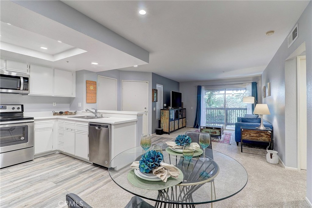 Stunning 1 bedroom/1 bath condo in a quiet, beautiful corner of the highly desirable condominium complex of Canyon Hills. Private, top floor unit - no one above. Open kitchen floor plan with spacious dining and living rooms. Master bedroom has en-suite bathroom, large walk-in closet and access to private patio which is also accessible from living room. Unit has central heat/AC, laundry closet - Full size washer/dryer included, large covered balcony and stainless appliances. A single car detached garage is located close to the home in addition to ample guest parking. The Canyon Hill association features lush landscaping, two pools, spas, fitness center, clubhouse and trash/water paid. Walking distance to Peters Canyon Wilderness park, Irvine Regional Park, Santiago Canyon College, hiking and horse trails and paved walking trails throughout the Santiago Hills community. You can’t beat this neighborhood! Great for a first-time homeowner or investor.
