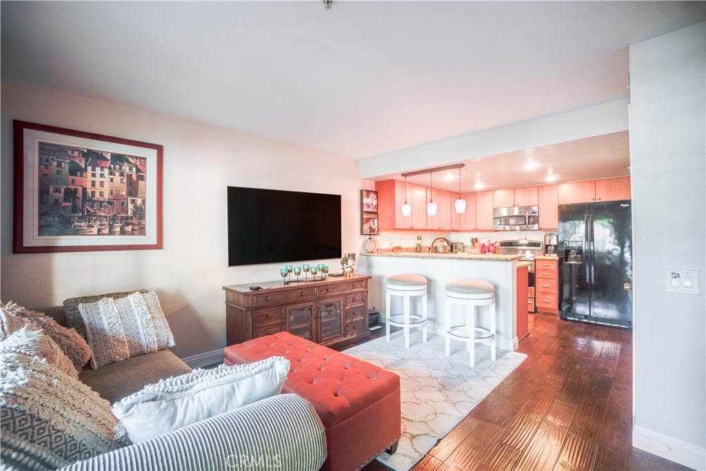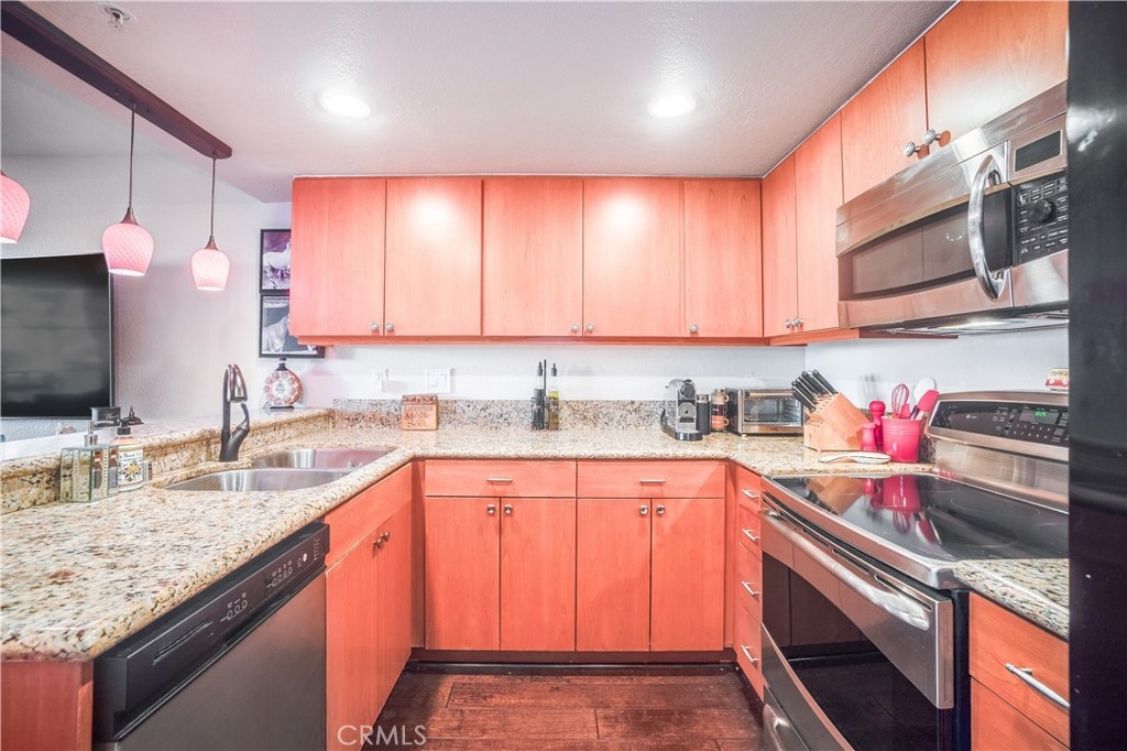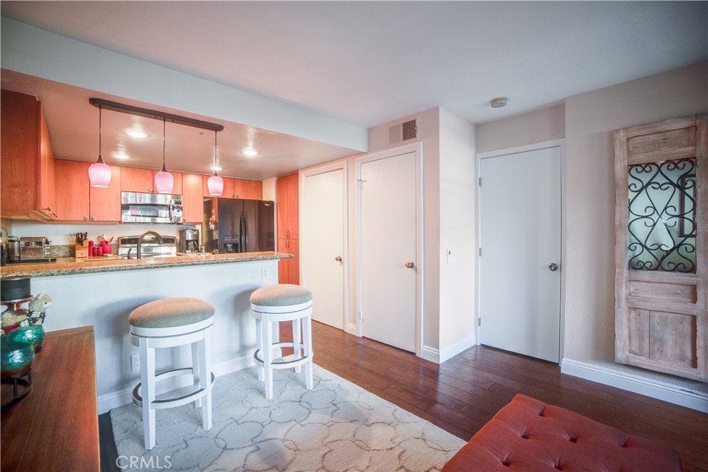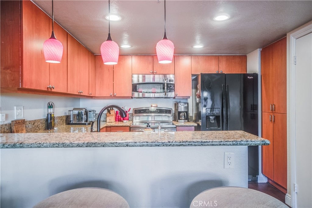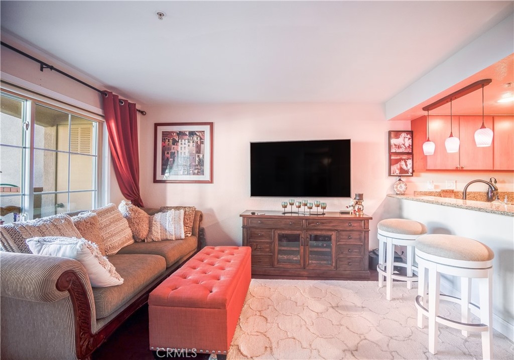 Everything you could want in a bundle of convenience! This is the opportunity to own a piece of East Orange beauty. There is so much to love about this property. Warm color tones of the updated cabinetry, and granite counter tops makes this a beautiful kitchen space. Island bar seating with pendant lighting. Stylish upgraded appliances finishes off the look. Open floor plan to the living space with smooth ceilings and gorgeous flooring. Bedroom is equipped with large closet and many linen closets. Separate laundry space with a dual washer/dryer. Enjoy a large patio space for morning cups of coffee or enjoying all the canyon views! Private garage parking and the location that can't be beat! Walk/hike/bike or ride your horse around the trails at Peter's Canyon. Close and convenient to Santiago Canyon College, stores and shopping. Community offers pools, spas, gym and clubhouse, even a car wash. Ample parking makes this community a gem. All condos have been re-piped with PEX line plumbing and roof is BRAND NEW! Water is paid by Association FHA/VA Approved. If you are in the market for a lovely traditional 1 bedroom condo, this one is for you.