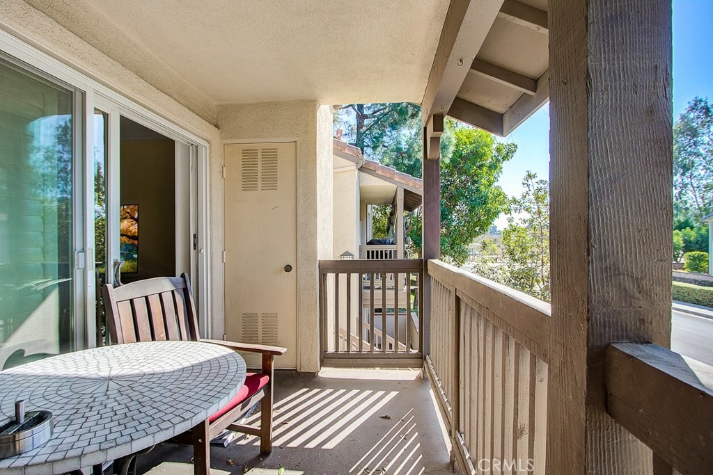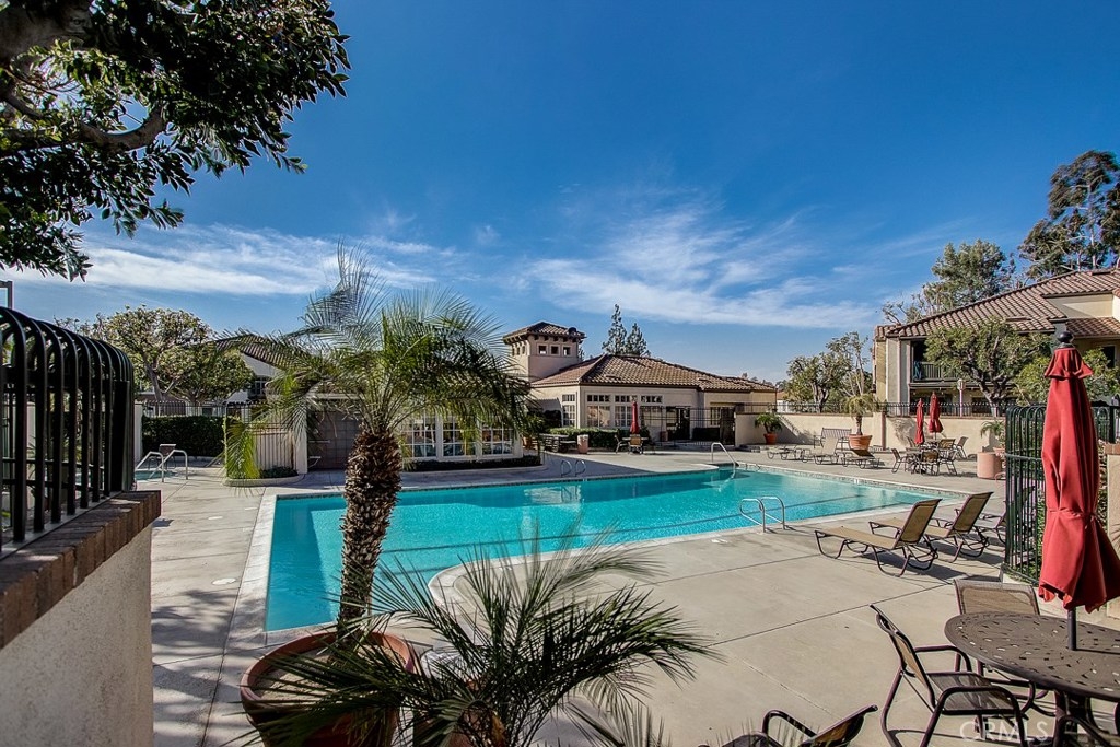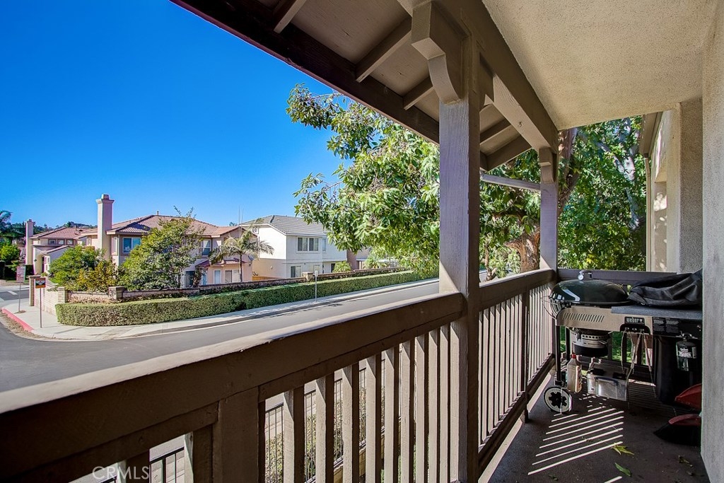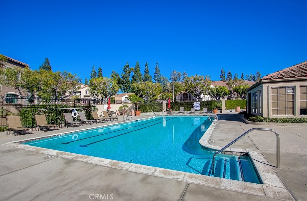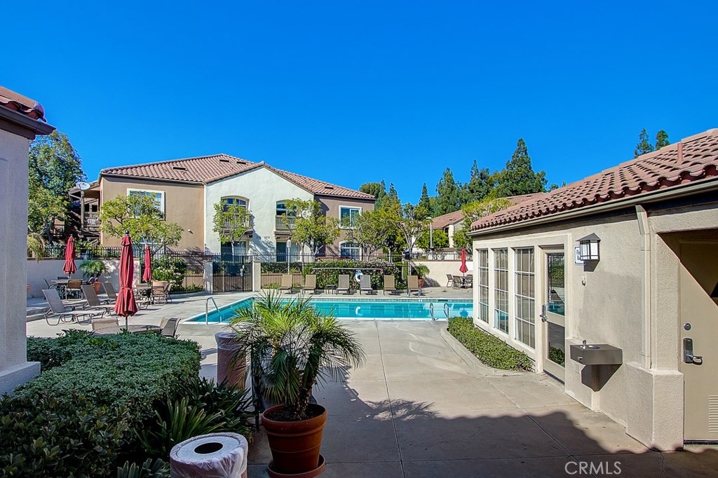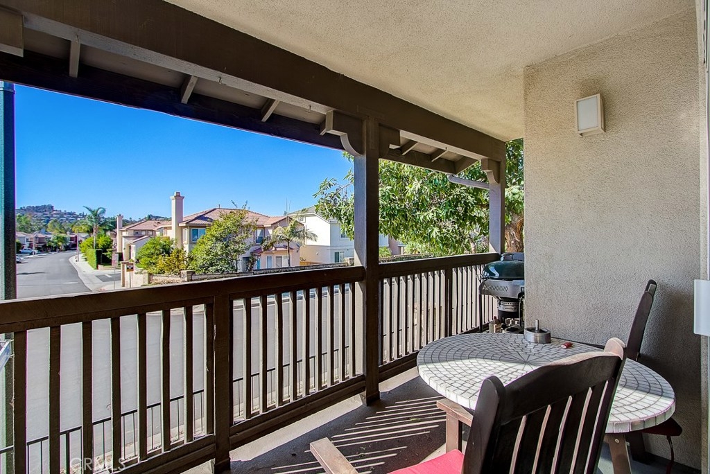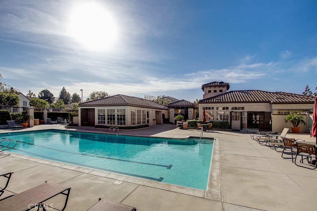 Wonderful Canyon Hills condo in a desirable location in the city of Orange! Through the entry is a remodeled kitchen with beautiful custom Cherry wood cabinetry, stainless steel appliances, and upgraded granite countertops. The kitchen overlooks an open living room and dining area with crown molding, plantation shutters, and modern paint tones. Large sliding doors open to a private balcony with views of the neighborhood and Peters Canyon. Enjoy relaxing on the spacious balcony and enjoying a cup of coffee in the morning. The spacious master bedroom is open and bright with large light-catching windows. The master ensuite is beautifully adorned with marble tile look walk-in shower and beautiful vanity. There is an additional spacious bedroom with a walk-in closet that has an adjoining full bathroom nearby. 2 car garage! This wonderful community boasts a pool and clubhouse and is close to Peters Canyon hiking trails, Santiago community college, shops, and restaurants.