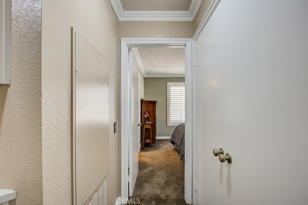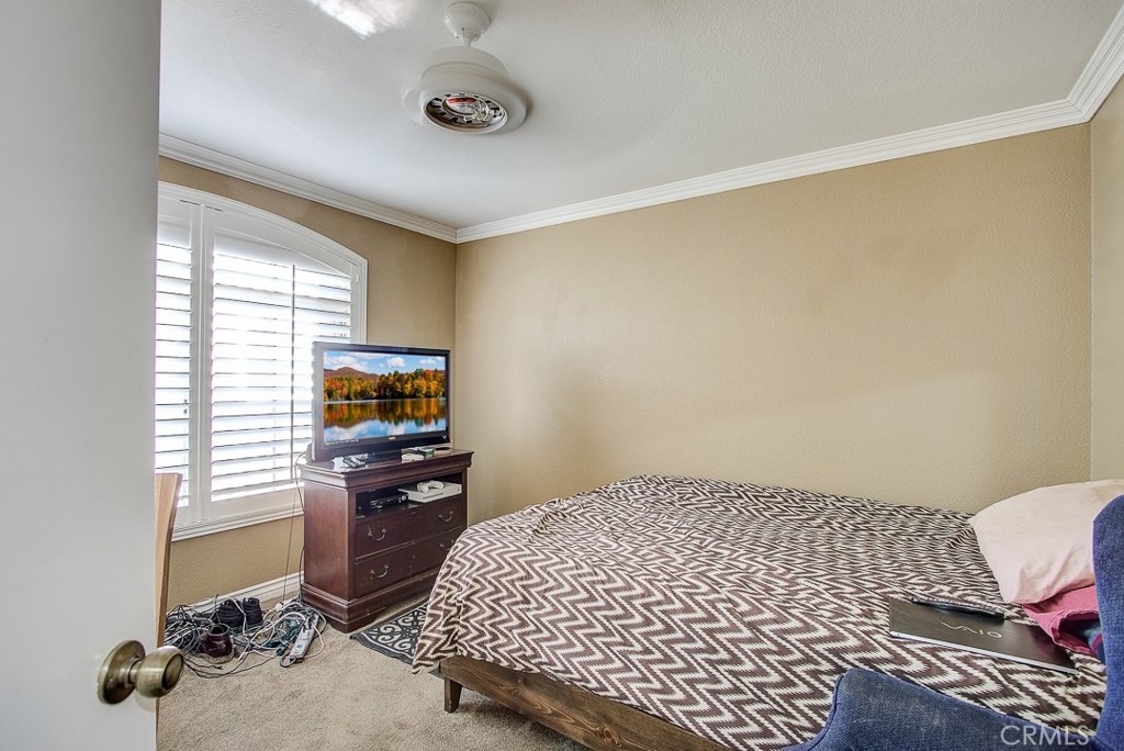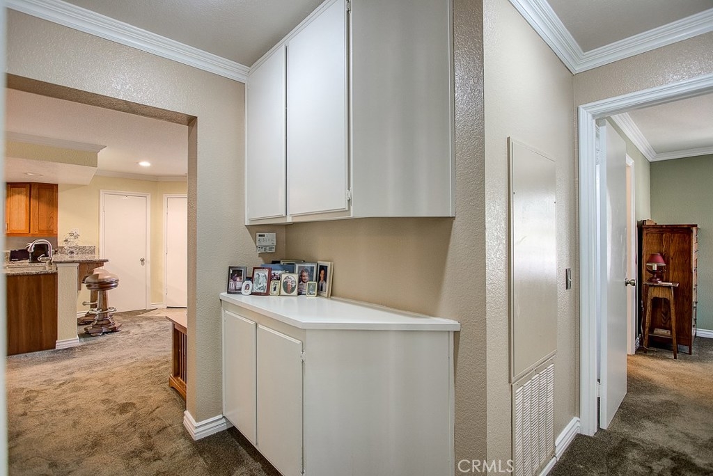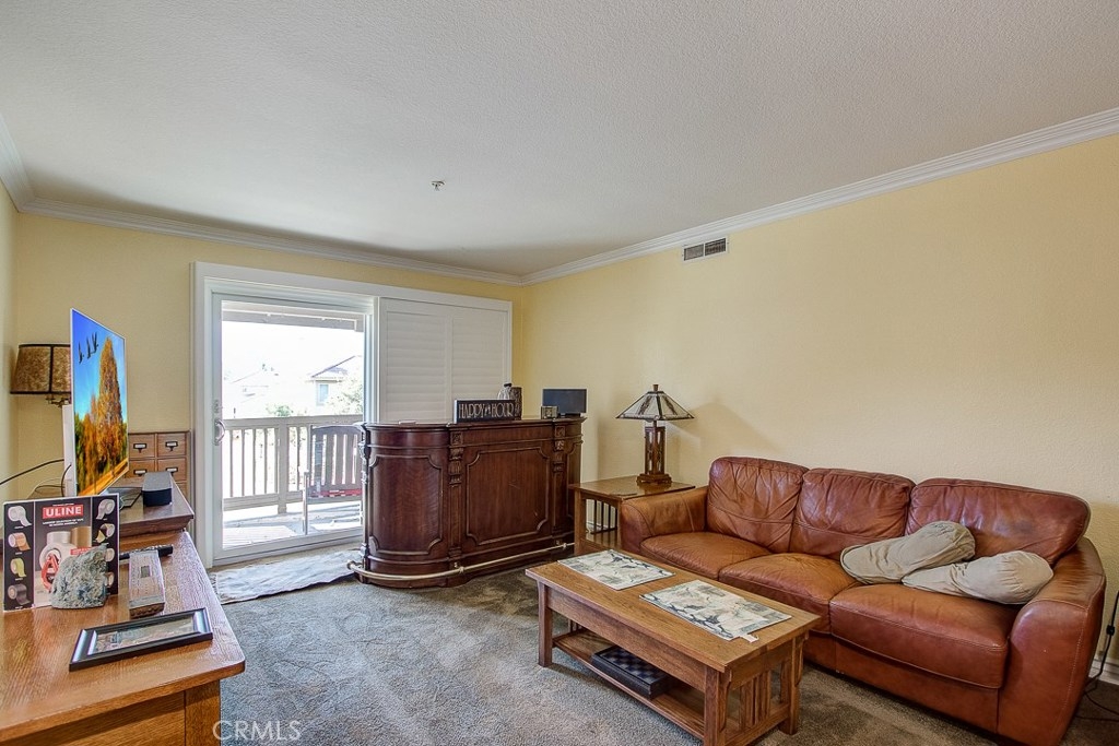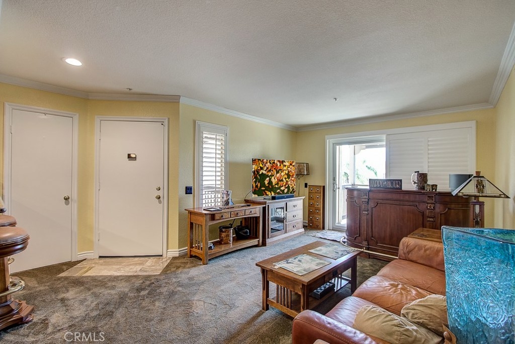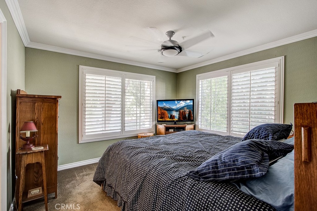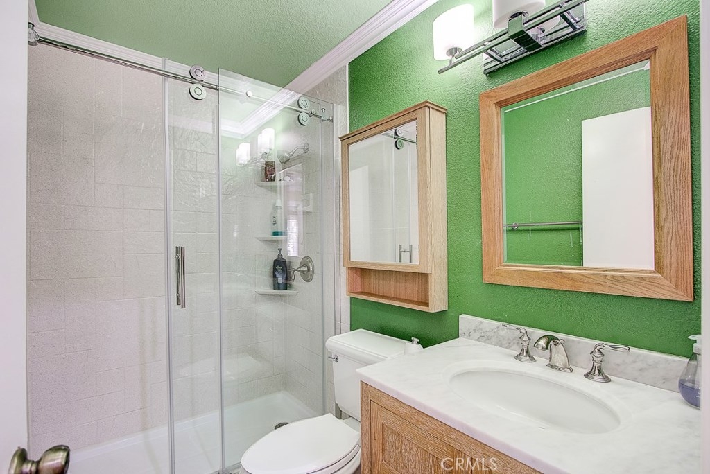 Wonderful Canyon Hills condo in a desirable location in the city of Orange! Through the entry is a remodeled kitchen with beautiful custom Cherry wood cabinetry, stainless steel appliances, and upgraded granite countertops. The kitchen overlooks an open living room and dining area with crown molding, plantation shutters, and modern paint tones. Large sliding doors open to a private balcony with views of the neighborhood and Peters Canyon. Enjoy relaxing on the spacious balcony and enjoying a cup of coffee in the morning. The spacious master bedroom is open and bright with large light-catching windows. The master ensuite is beautifully adorned with marble tile look walk-in shower and beautiful vanity. There is an additional spacious bedroom with a walk-in closet that has an adjoining full bathroom nearby. 2 car garage! This wonderful community boasts a pool and clubhouse and is close to Peters Canyon hiking trails, Santiago community college, shops, and restaurants.