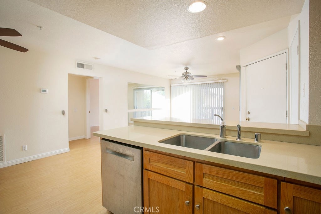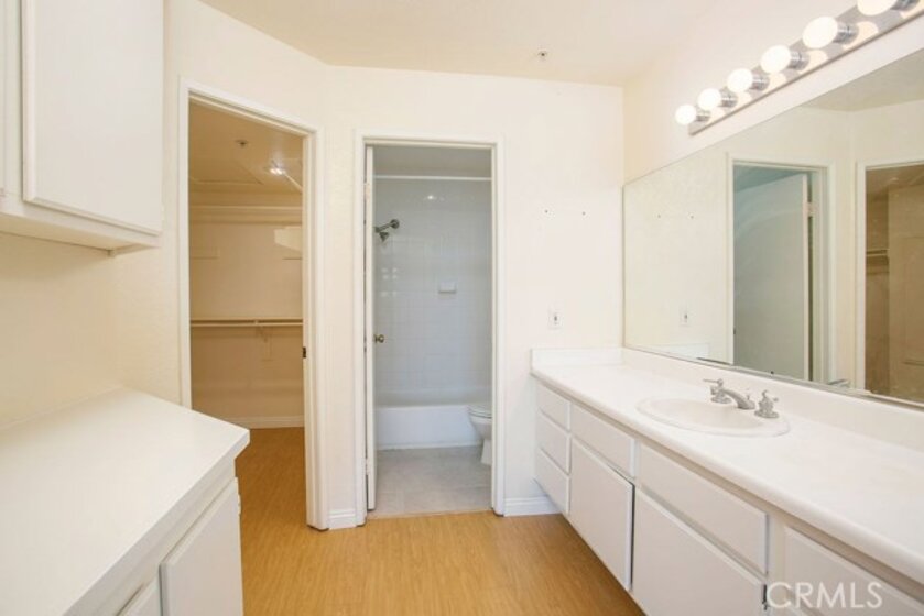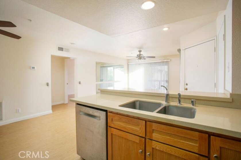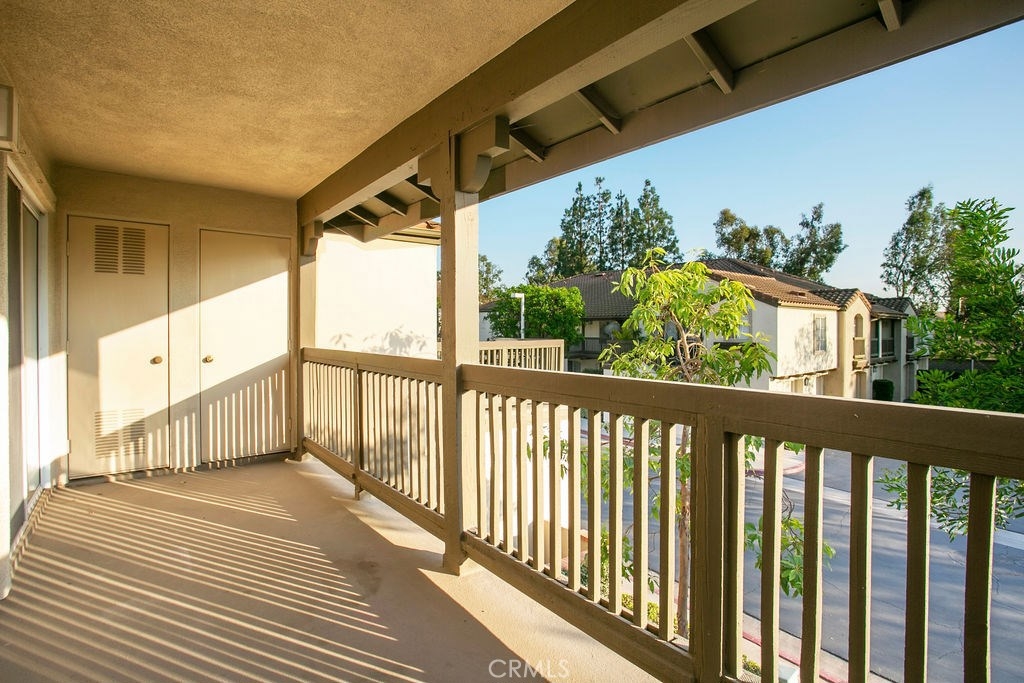 Wonderful opportunity! Upstairs 1 bedroom/1 bathroom condo in popular Canyon Hills community! Spacious living room with ceiling fan and sliding glass door leading to balcony. Remodeled kitchen with quartz counters, stainless steel appliances and newer kitchen cabinets. Dining room area with ceiling fan opens to living room. Upgraded vinyl flooring throughout. Master bedroom has ceiling fan, sliding door to balcony and large walk-in closet! Attached master bathroom has full tub and shower and upgraded tile. Inside stackable washer and dryer in hallway closet. One car detached garage within steps of condo! Canyon Hills includes 2 pools, 2 spas, exercise room & club house. WATER & TRASH included. Beautiful area with many walking and biking trails, lush trees and nice landscaping. Close to Santiago Canyon College, Chapman Hills Elementary, Peter's Canyon, Irvine Park, Chapman University, Tustin, Irvine, Tustin Ranch, Tustin Marketplace, Irvine Marketplace, toll roads and much more!