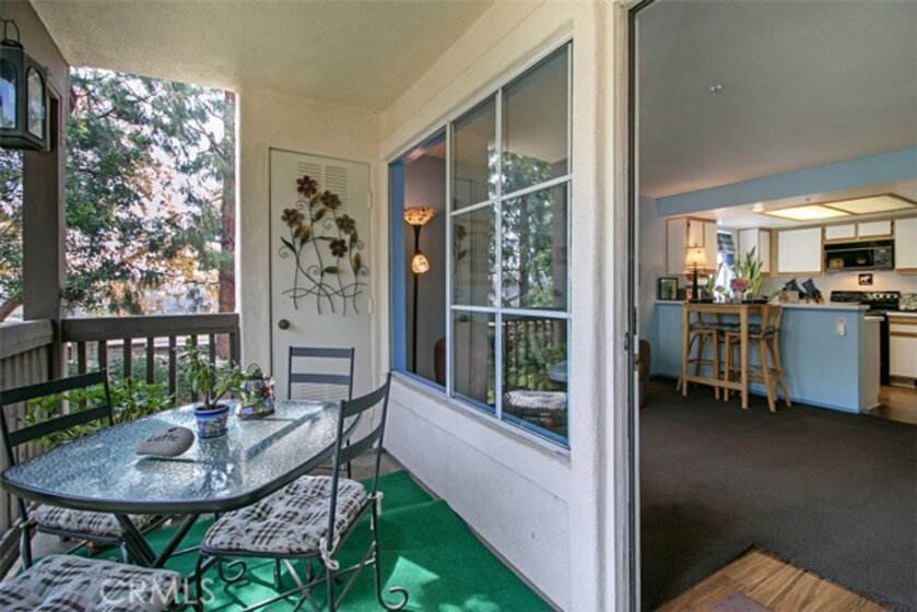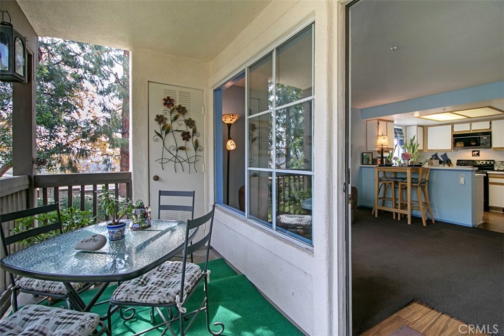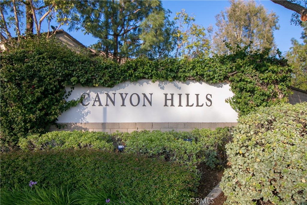 Beautiful end unit in popular Canyon Hills community! Upstairs studio floor plan in beautiful location, overlooking greenbelt of plants and trees and view of Peter's Canyon. Home is light and bright with custom interior paint. Open floor plan with spacious living room, open kitchen with upgraded porcelain sink, updated fixtures, plenty of cabinetry and breakfast counter/bar. Living room has room for eating area. Very nice spacious patio deck before front door. Separate sleeping area with walk-in closet and attached bathroom with upgraded sink and fixtures plus full tub/shower. Inside laundry with stackable washer/dryer. One car detached garage within steps of condo. Canyon Hills community has two pools, two spas, exercise room and clubhouse, plenty of greenbelt areas and walking areas. Homeowner's Association dues include water and trash. Longtime seller has pride of ownership! Community is close to Santiago Canyon College, Irvine Park, Tustin Ranch, Tustin Marketplace, Irvine Marketplace and more! Amazing opportunity!
