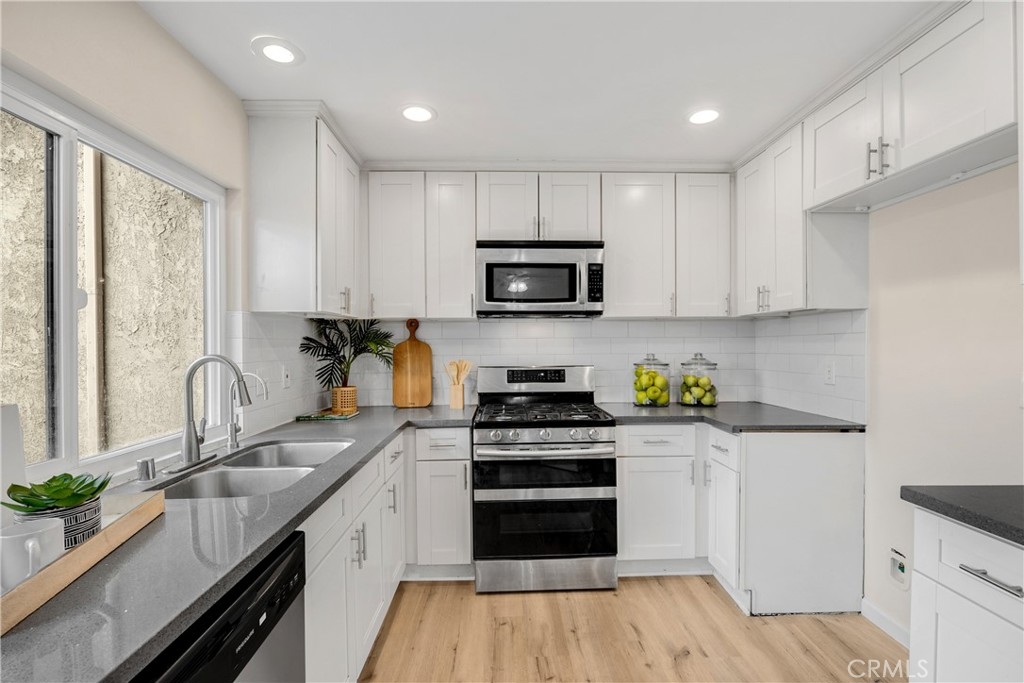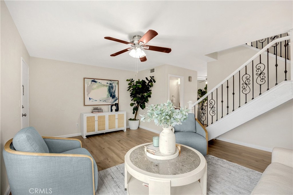 WELCOME TO 11695 BLACKTHORN LANE! This tastefully and thoughtfully upgraded, two-story townhome is located in a prime area of the wonderful city of Orange. Newly painted and featuring gorgeous new flooring throughout, this home is ready for you to move right in! The bright and spacious living area features a convenient powder room and ample-sized closet. The modern open kitchen boasts quartz counters, upgraded faucet, built-in water filter and dispenser, and stainless steel appliances. Enjoy your meals in the naturally illuminated dining area. Decorative wrought iron balusters add additional elegance as you make your way upstairs. Retreat to your large primary bedroom featuring a roomy walk-in closet with direct access to the full bath. Sharing the second floor are two generously sized secondary bedrooms. New luxury vinyl plank tile, new carpet, newer windows, newer HVAC system, ceiling fans, and recessed lighting provide comfort and convenience throughout. The serene and spacious backyard offers space to grow and lounge with plenty of green and hardscape areas. The meandering path through the backyard provides direct access to the detached 2-car garage which houses your laundry hook-ups (washer and dryer included) completing this ready to move-in home. Community amenities include association pool, spa, community center, greenbelts and walking paths. Easy access to the 22, 5, 55 and 91 freeways, shopping, restaurants like Orange Hill and Orange Mining Company, and more!