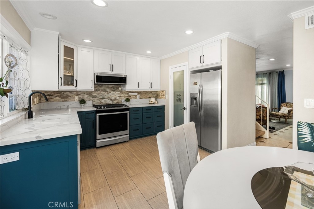 Welcome to this charming 3 bedroom, 2 bathroom townhouse in the heart of Orange with a beautiful view of the pool area. Featuring 1159 square feet, this two-level home offers a perfect blend of modern updates. This home has been lovingly updated and maintained. Step inside to a spacious living room that flows into a remodeled kitchen featuring quartz countertops, updated cabinets, stainless steel range and fridge. You will also enjoy the large walk-in pantry as well as a cozy dining area. The main floor also boasts an updated bathroom with a walk in shower. All other three bedrooms, including a master with a walk-in closet, are conveniently located on the second level alongside another full bathroom. Featuring central air conditioning and heating ensuring year-round comfort. Outside, a private courtyard leads to a two-car detached garage and laundry hookups, offering both convenience and storage. The home is just steps from the community pool and a lush greenbelt, ideal for relaxation or recreation. With a low HOA monthly fee, you’ll enjoy well-maintained grounds and amenities. This home is within walking distance to top-rated schools (Esplanade Elementary, Santiago Middle, and El Modena High), church, and vibrant Old Town Orange. Enjoy easy access to shopping, dining, freeways, and toll roads. Don't miss this charming home.