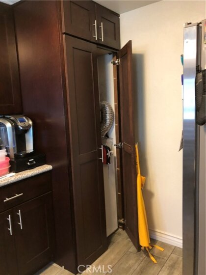 This classy French inspired condo complex offers a great opportunity as it includes a very rare feature for this complex. Two private parking spaces! One located at your front door for easy access and one spot located in the shared enclosed two car garage which also has lots of extra storage space. There is tons of potential in this two story Condo home. Featuring two large bedrooms upstairs with walk in closets and large full bath with double sinks. Downstairs you will discover a 3rd bedroom to be used as a den/office space with a newly updated 3/4 bath. There is a large living room with cozy beautiful stone fireplace and direct access to the outside which has a private enclosed patio area. This is a Pet friendly complex. The kitchen is functional and has a laundry area for stackable washer/dryer. Located in the heart of Orange County with easy access to shops, restaurants and fwys. Orange Unified School District. Priced to sell, so make an offer today!