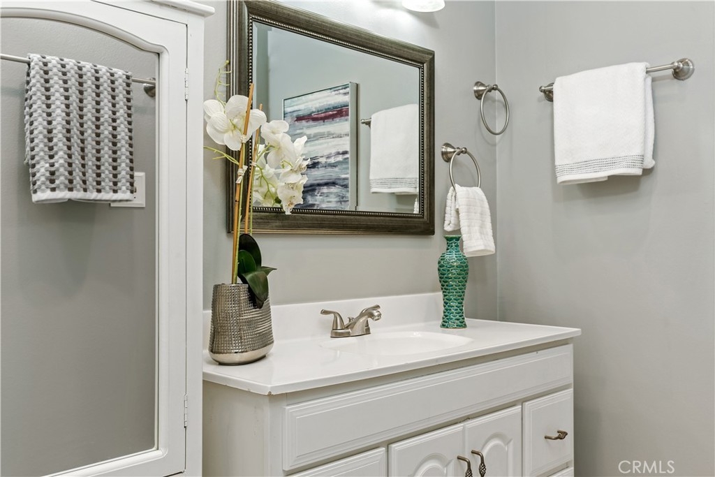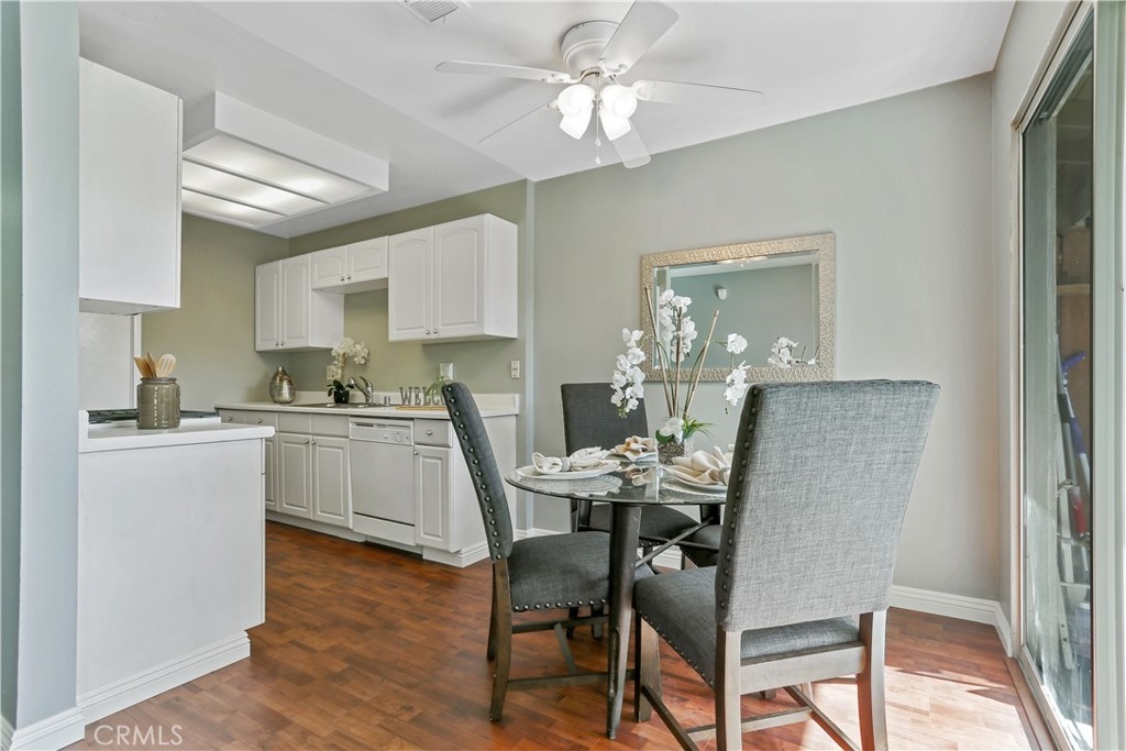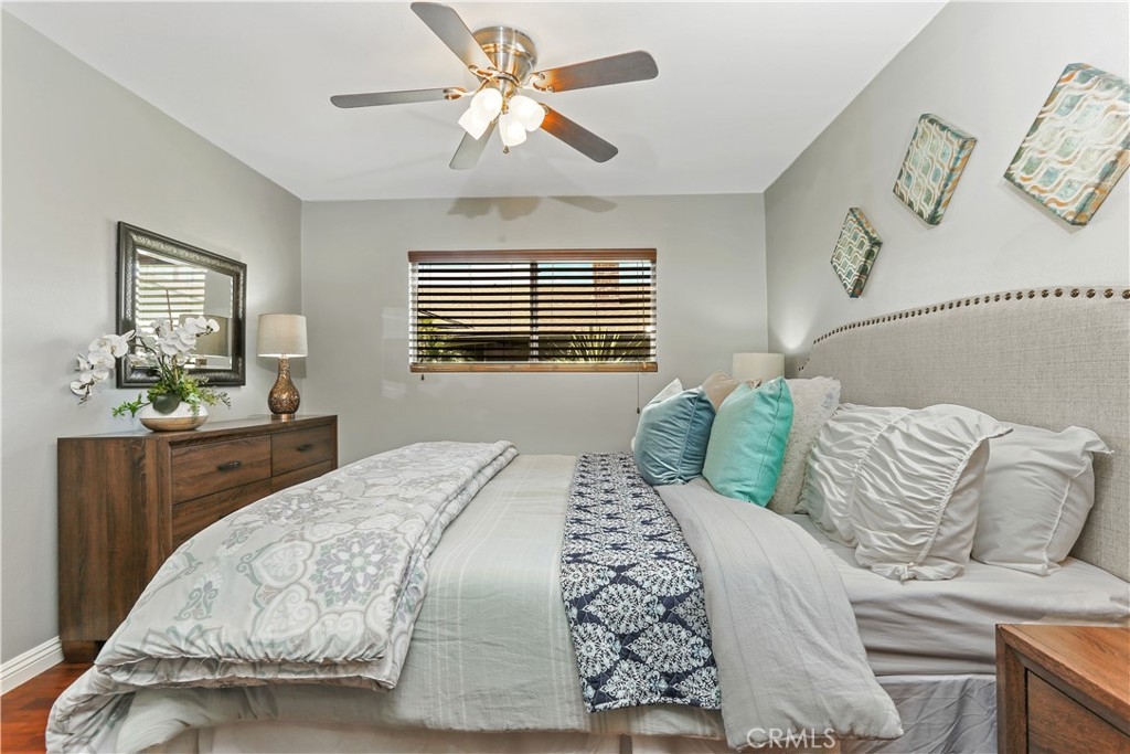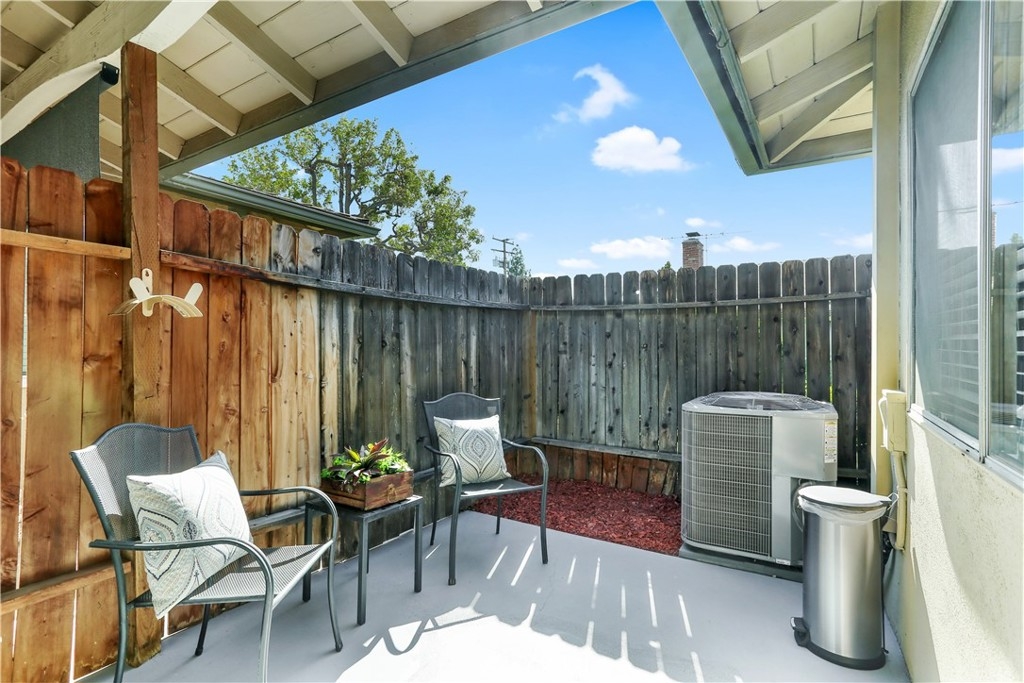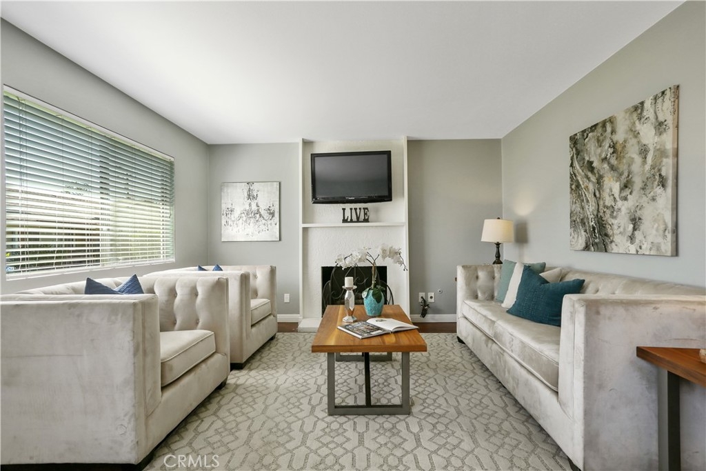 This charming home in the Coca Palms community has been recently freshened and looks great! Located perfectly on a greenbelt in the front of the community with easy access to the sparkling community pool, soothing spa, BBQ area and the clubhouse which is perfect for events. This open floorplan has lots of natural light and features a spacious living and dining area with it's own cozy brick fireplace. The kitchen has plenty of counter and cabinet spaces. Easy care wood plank style laminate flooring throughout the min living area. Ceiling fans and a newer A/C unit will keep you cool as we head into the summer months. Newer energy efficiency water heater, air conditioning and furnace will help keep the utilities cost down. Walking close to so many restaurants, shopping, grocery stores and then all the entertainment that comes with The Village at Orange. Convenient access to the 55 and the 91 make for an easy commute. Great Villa Park High School.