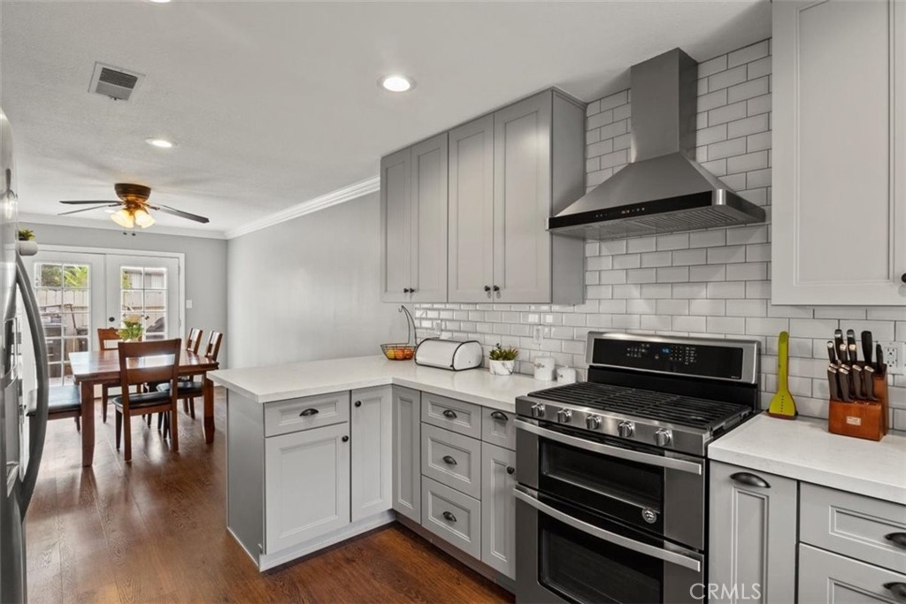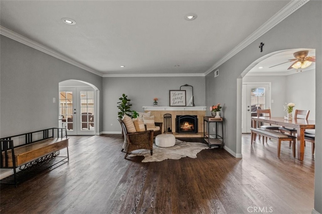 Stop Looking. Start Unpacking! This beautiful 4 bedroom, 2.5 bathroom Orange townhome features an attached 2 car garage and a fenced-in patio. As you walk into the home you will notice the upgraded laminate flooring throughout the first floor. There is are 2 living spaces, one with a fireplace and the other has two sets of French doors that lead to the back patio. The remodeled kitchen features quartz countertops, stainless steel gas stove, a farmhouse sink, and a dining room with another set of French doors leading out to the back patio. There is also an updated half bath and direct access to the garage. Upstairs is the master bedroom with a brand new master bathroom. The spacious bedroom has a wall of closets, recessed lighting, and access to the balcony. Down the hall are three more bedrooms and another updated bathroom. The community features a pool, tennis courts, playground, and multiple greenbelts. Located minutes from Old Towne Orange, Angel Stadium, Honda Center, and is a commuters dream with access to the 55, 57, and 91 freeways in minutes.