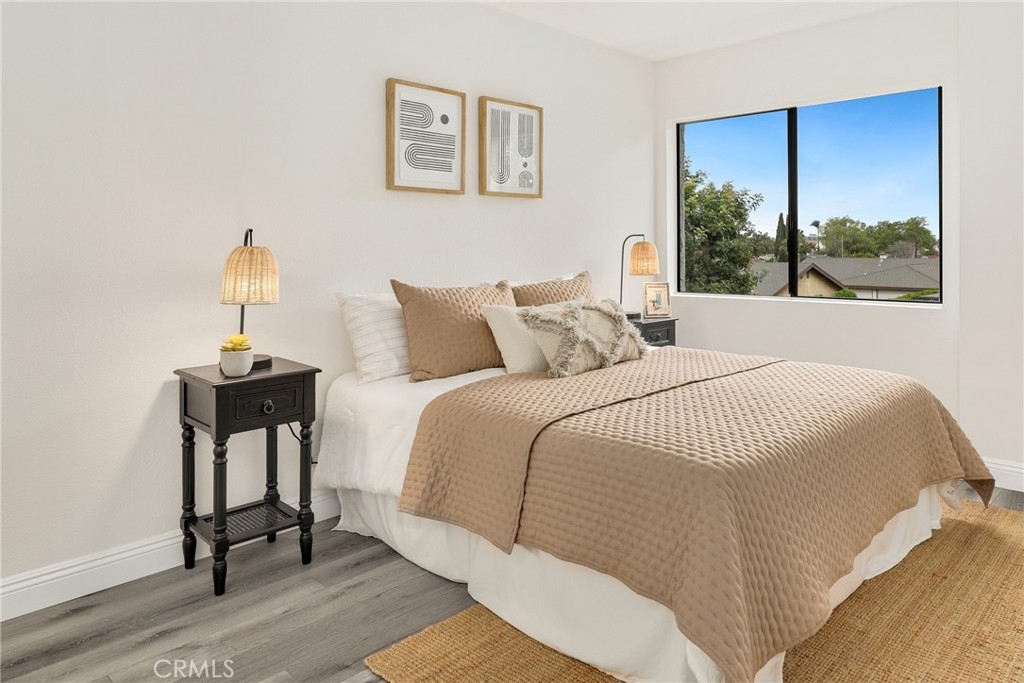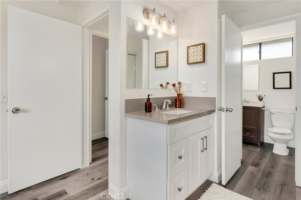 Beautiful Townhome centrally located in the heart of Orange. This adorable two-bedroom, 1-1/2 bathroom condo is ready for its new owners. Enter this elegant split-level floor plan into the living room that features fresh paint, new LVP flooring and a slider to the spacious patio for you to enjoy a relaxing evening or morning coffee. The dining room offers views of the living room and kitchen and gets ample sunlight. The kitchen features fresh white cabinets, gray quartz countertops, and a cute garden window over the large stainless steel farmhouse sink. Adjacent to the kitchen is the laundry room and an updated powder bathroom. Upstairs you will find 2 oversized bedrooms with plenty of closet space. The hallway bathroom serves both bedrooms and has been updated with white cabinets, and quartz countertops. The detached 2-car garage is conveniently located just below the unit. Association includes a pool, spa, and paid trash. Easy access to the 5, 22, 57 freeways and minutes from CHOC hospital, Chapman University, and Old Towne Orange with great shops and restaurants.