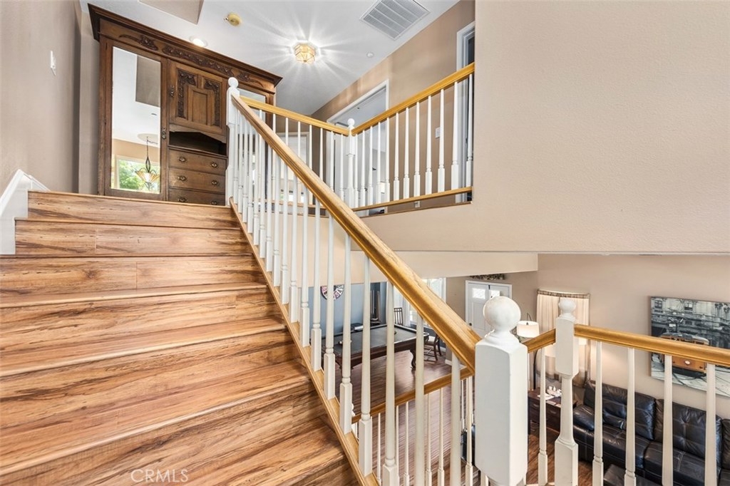 Well maintained three-story condo in the gated community of The Huntington in Orange. Conveniently located to shopping, transportation, entertainment, trails, and the multiple resources of Grijalva Park only steps away. Entrance to this spacious home is across a cozy front porch and into the living area on level 2. Here you will find a well-defined dining area, kitchen with a convenient counter for eating, an additional casual dining area, and plenty of room to cook-up a great meal for friends and family. The step-down living room features a gas fireplace, vaulted ceilings, and provides access to a deck perfect for sipping beverages and grilling. A convenient power bath is also provided on this level. As is traditional with a townhome design, all bedrooms are located on the third floor. The generous sized master has an ensuite and numerous windows that provide ample natural light. A full bath separates the two other bedrooms, one of which currently serves as a home office. The first level has a 3 car garage and an enormous additional attached room perfect for the storage of bulky items. The association amenities provide the owner with a choice of pools and spas, clubhouse, greenbelt areas, and ample guest parking. A great place to call home, this property will not disappoint!