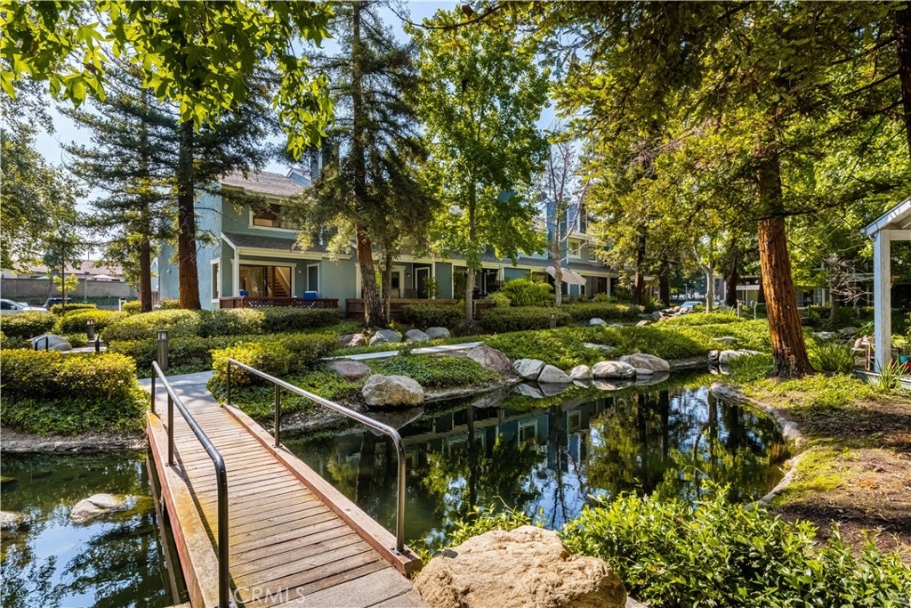 Premium LOCATION end unit with unparalleled view of the pool/spa, mature redwood and pine trees, lake and streams, bridges, ducks & birds . Welcome to Morningside by the Lake, close to Old Towne Orange but tucked away in a mountain-style retreat. 2 Bedroom, Jack & Jill full bath upstairs, MBR has dressing area with large vanity/sink-cathedral ceilings, lots of storage, 1/2 bath downstairs. Open concept kitchen & living areas, 1 car garage (laundry hookups) plus 1 assigned carport and ample guest parking. Patio entry between garage and condo. Light and bright with recessed lighting, skylight upstairs. A little TLC (paint & updating) will make this a perfect home to live in this resort atmosphere adjacent to Hart Park with lots of walking & biking paths for pets & exercise. Video link: https://my.matterport.com/show/?m=x2GVGJuVVoz