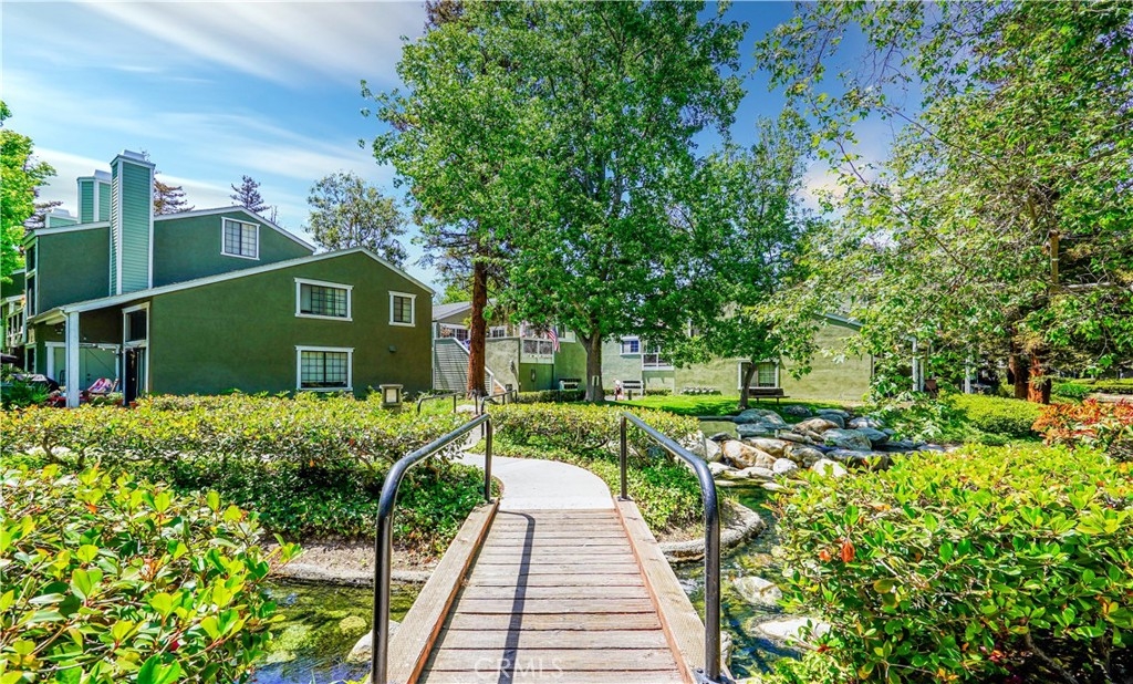 A beautifully decorated and charming 1 bedroom loft and 1 bathroom condominium in the highly desirable MORNINGSIDE ON THE LAKES community. As you enter the front door, you are welcomed into your cozy living room with high vaulted ceilings and cobblestone rock fireplace. Adjacent to it is your dining room, breakfast bar, and kitchen. Enjoy the views from your kitchen window as you see those enjoying the outdoors at the nearby Santiago Creek Trail and Bike path. This home boasts wood laminate floors, granite countertops, plantation shutters, new carpet, newer paint, upgraded bathrooms, and much. much, more !!! Enjoy your morning coffee and meals on your back patio amongst the mature trees and foliage. Morningside Community features include a pool, spa, and BBQ area. Enjoy a leisurely stroll amongst the trees, streams, bridges, ducks, fish, & birds. This home is perfect for the single individual, the young couple just starting out, a 2nd home, or an investment. Walking distance to Hart Park, the historic Old Town Orange, and Chapman University. Amazing restaurants, shopping, and entertainment are minutes away. You will not be disappointed.