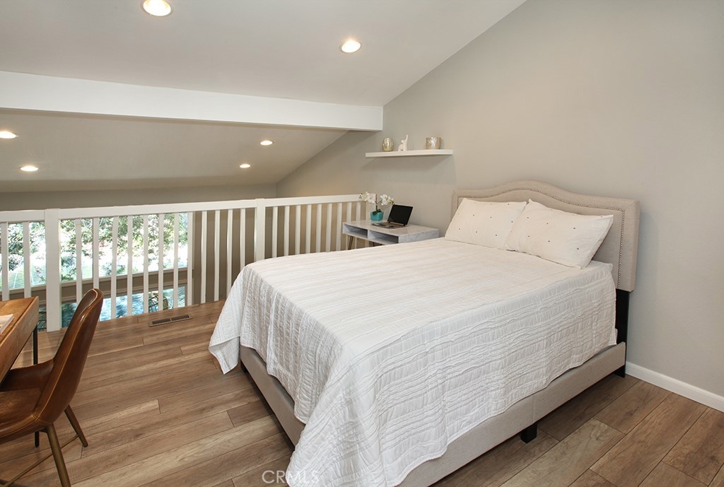Are you looking for a contemporary, modern home with an open floor plan? Then this is your lucky day. An updated, modern loft with a deck overlooking the scenic Orange Lakes. One whole wall of glass overlooks the tranquil lake! There’s been so many updates to this home we had to make a list for you and leave it on the kitchen counter. All stainless steel kitchen appliances, a Kohler cast iron sink and soft close drawers and cabinets. Wood-look laminate flooring upstairs and down as well as on each individually wrapped stair step. A huge, 10ft. dual-paned sliding glass door and screen were upgrades as well as the Nest thermostat and recessed lighting throughout. Instead of using the community laundry facilities, this home has been renovated to include your own stackable washer and dryer. A brand new washer and dryer have been ordered and will be installed before the end of June. The upstairs loft is open to the lake view and a sliding barn door separates the sleeping area from the bathroom and walk-in closet. A walk-in shower has a spa-like pebble flooring and white organic subway tiles with dark grout and matching fixtures that complements the modern sink and industrial vanity. A skylight floods the upstairs with natural light. Just think about ending your day sitting out on the deck watching the sunset thru the trees. Homeownership is the California dream. This could be your dream come true.
