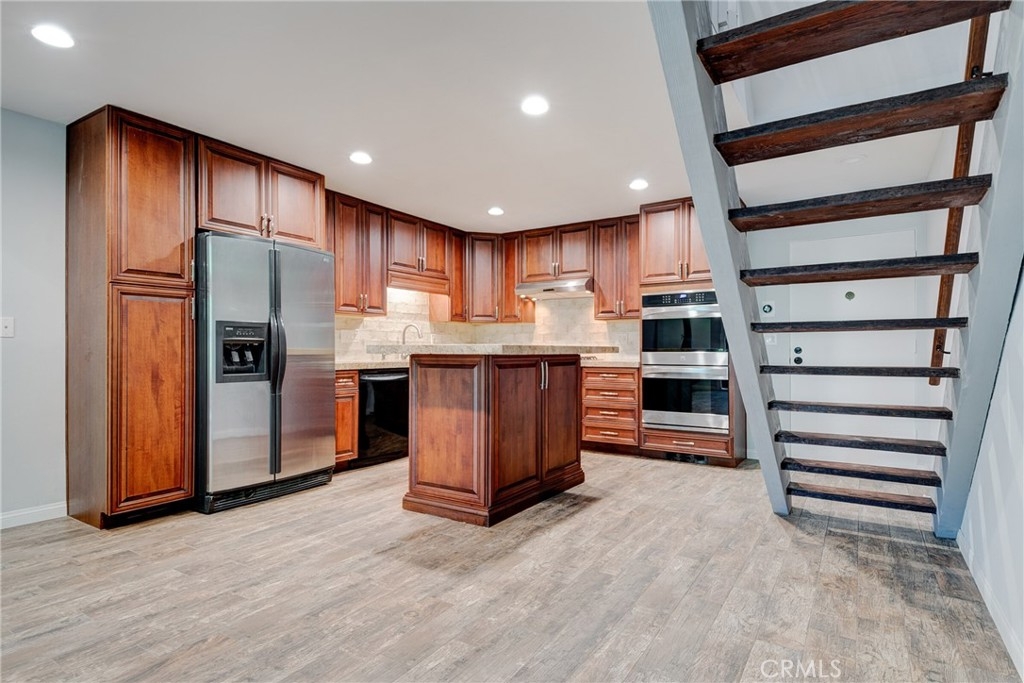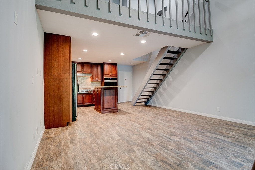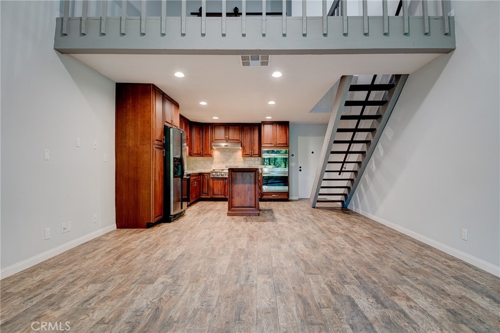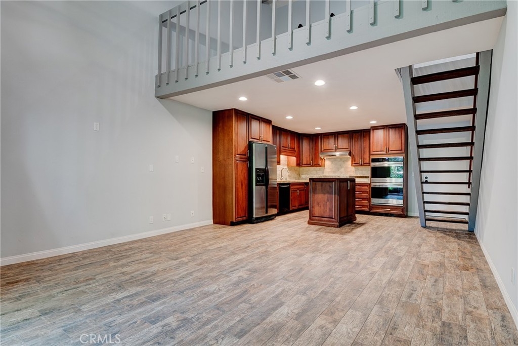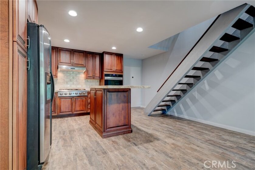 Why leave home? Step inside this luxurious loft home with an open concept floor plan and you will have to decide what you want to fall in love with first! The gourmet kitchen with center island welcomes the best of foodies with stainless steel appliances (including Kenmore elite double ovens), granite countertops, a gorgeous antiqued porcelain subway backsplash, recessed lighting and more. Just beyond the kitchen is your living room that opens to a private deck (with an additional storage closet) with views of the lakes--inviting you to enjoy a morning cup of coffee or an evening glass of wine as you watch the ducks and geese float past! Upstairs your loft bedroom awaits with a barn door that reveals a spa-worth ensuite bathroom with a double sink vanity and glass enclosed shower as well as upstairs laundry! Additional smart home amenities including a Nest thermostat and c0/2 smoke detector and wifi controlled Samsung washer & dryer. Move in ready luxury awaits. Could mention smart appliances.