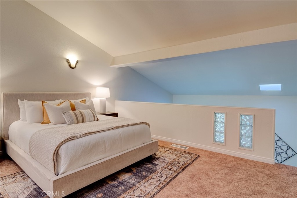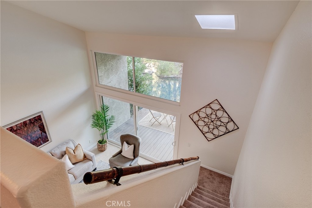 Step inside this modern, luxurious loft style home with an open concept floor plan and you will have to decide what you want to fall in love with first! The gorgeously remodeled kitchen features white shaker cabinetry, quartz counter tops and recessessed lighting. Just beyond the kitchen is your living room with cathedral ceilings and offering views of your private deck (with an additional storage closet) along with views of the lakes beyond--a perfect spot to enjoy a morning cup of coffee or an evening glass of wine as you watch the ducks and geese float past! Upstairs your loft bedroom awaits with an ensuite bathroom that is bathed in natural light. Additional amenities include inside laundry, scraped ceilings, newer water heater, newer sliders, and all solid surface flooring downstairs. Move in ready luxury awaits. Reserved parking spots are 57 & 102.