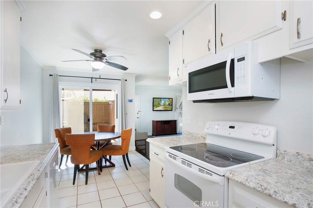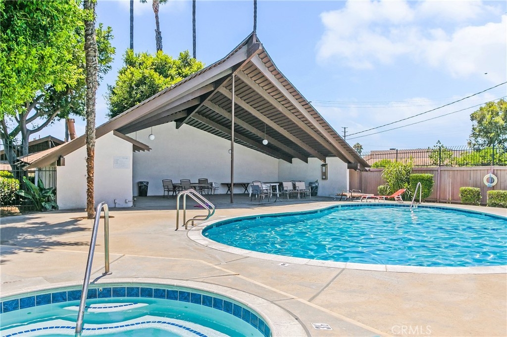 Single story condo, located in the “Park 72 community”, with spacious green belts throughout and Villa Park school boundaries. The home shows light and airy and ready to move in. The large living room with floor to ceilings windows open to the dining room and kitchen. All windows and patio slider have been upgraded. Custom crown moldings, baseboards, and high-end laminate flooring throughout. A sparkly white on white kitchen comes with a new dishwasher, microwave, sink, recessed lighting, and countertops. A generous master bedroom with a walk-in closet connecting to the oversized upgraded bathroom that offers granite counters, double sinks, and new faucets. The full-size washer and dryer are conveniently located between the master and bathroom. The enclosed patio has plenty of space for an outdoor patio set and a grill. Additional features include a whole house fan, custom blinds, ceiling fans, closet systems, new wall A/C unit, one detached garage (2 car garage shared with another unit), and plenty of open parking spaces throughout the community for guests. The HOA covers water, trash, and sewer. Other features of the community include a pool and spa and additional guest parking. The community is adjacent to the Orange Village Shopping Center, numerous restaurants, walking distance to parks, and easy freeway access.