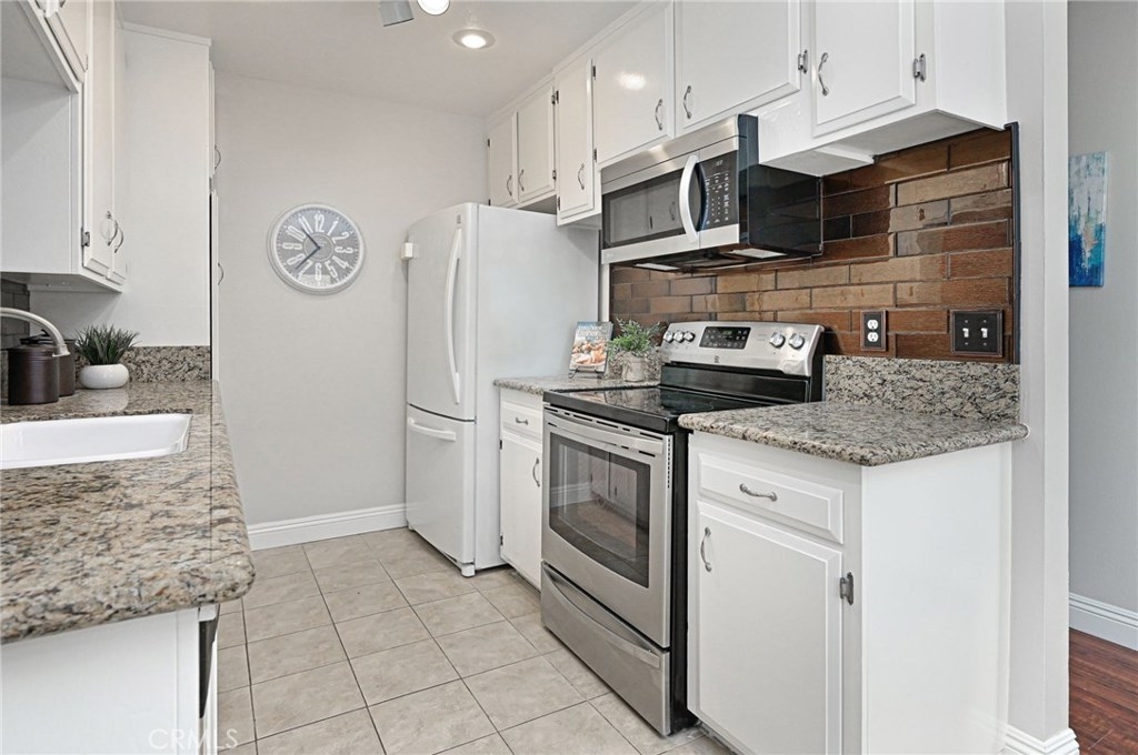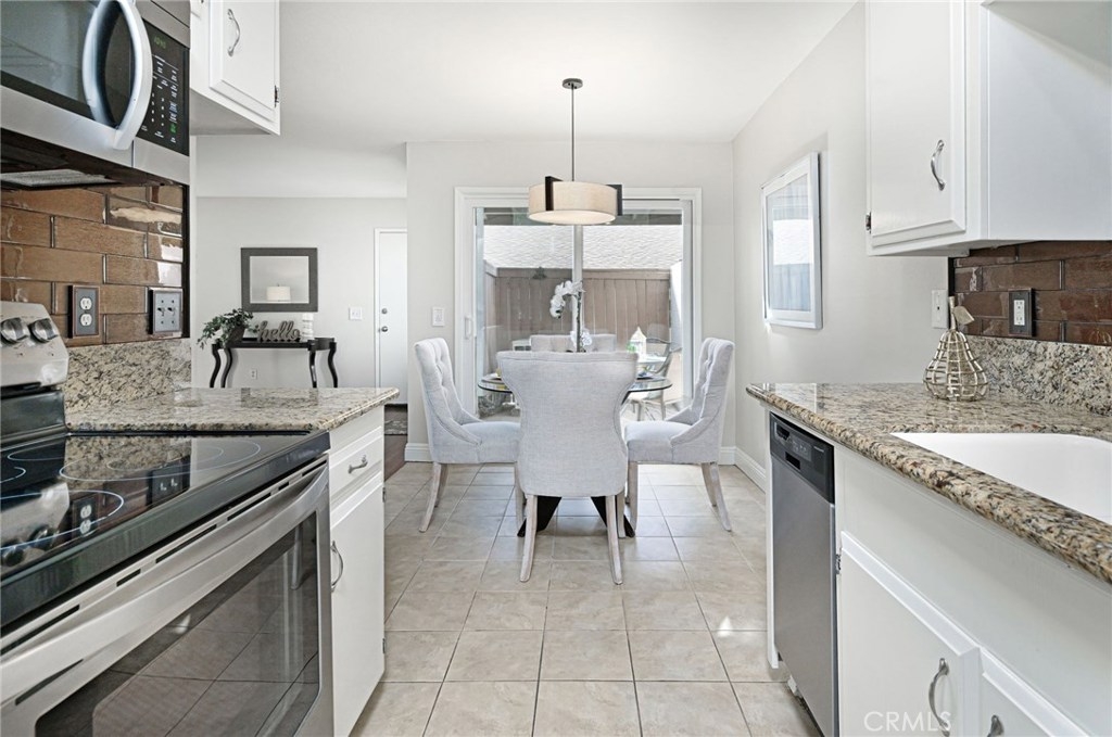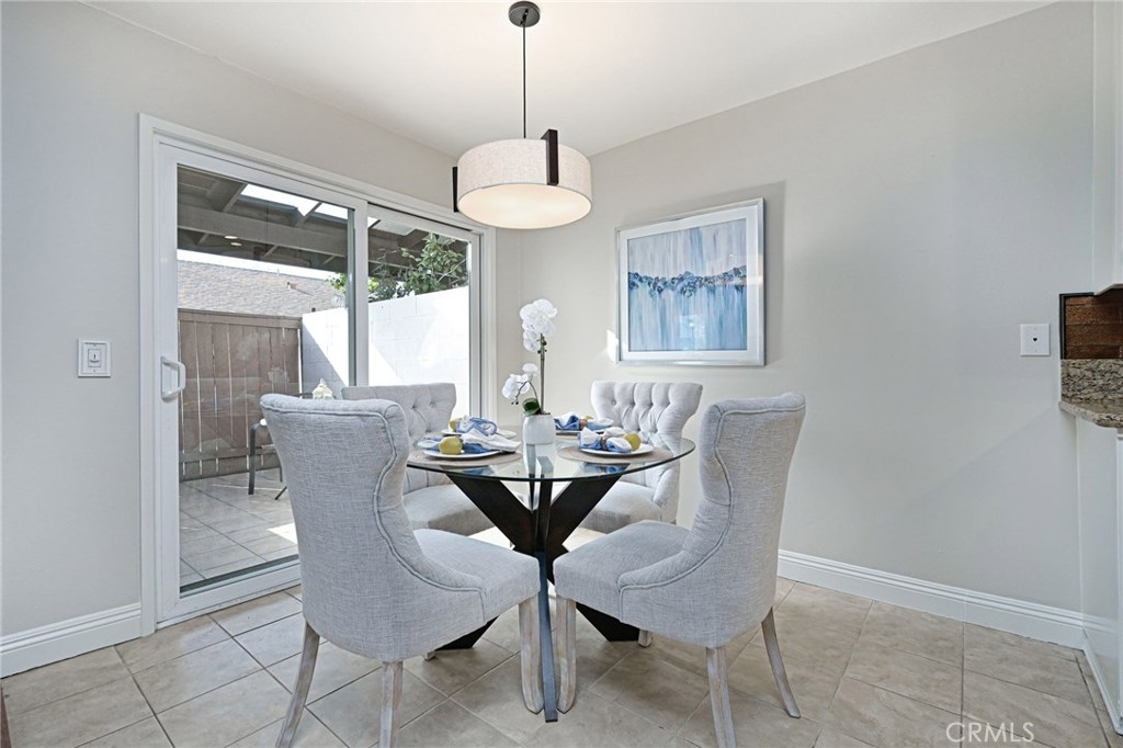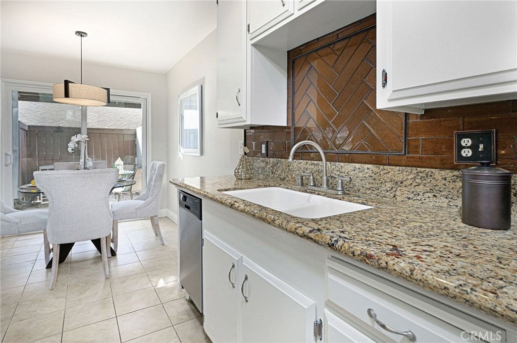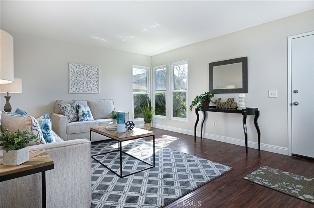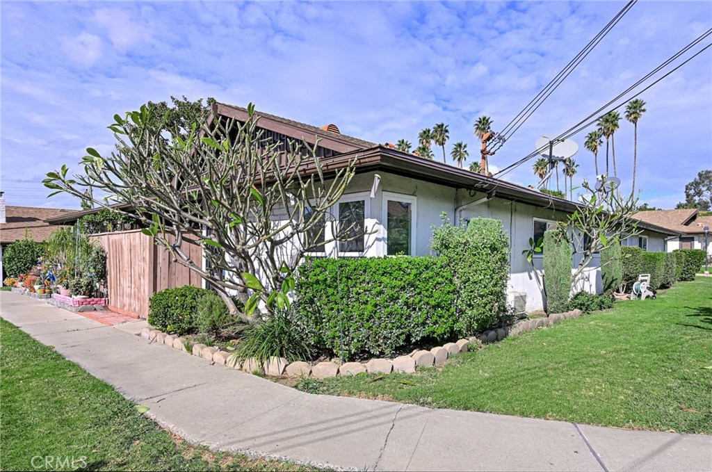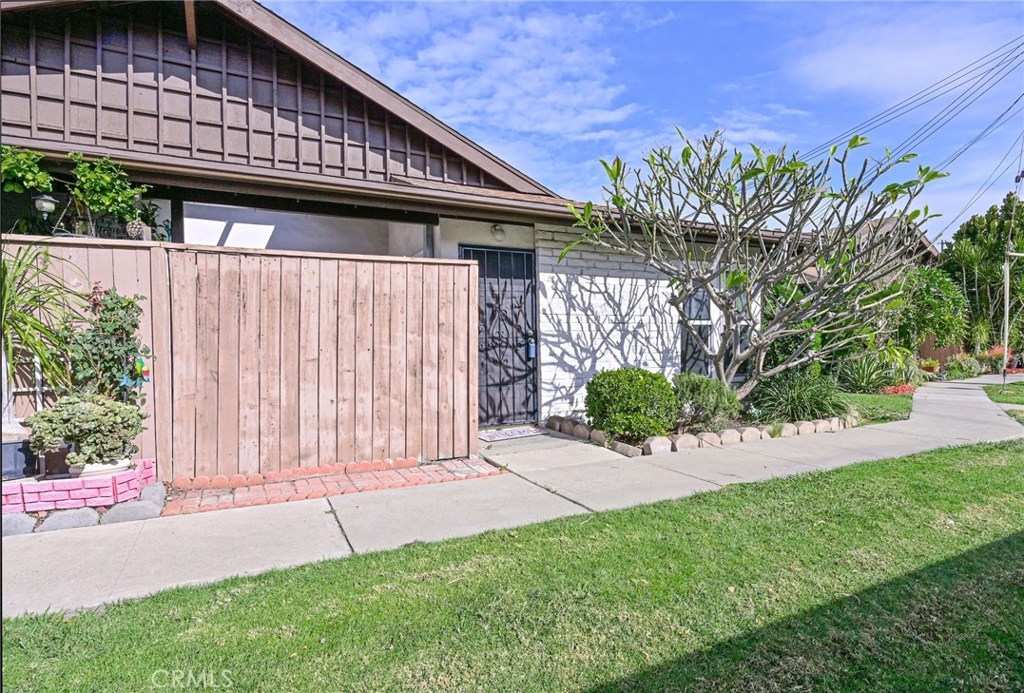This fabulous single story end unit couldn't be in a more convenient location. Everything you need is just steps away! The Village at Orange is right across the street with all types of shopping, dining and services including Trader Joe's and Walmart. There's a Target, Petsmart, Best Buy, Von's and so much more just down the street! Besides this fantastic location, you have a great place to live too! This small enclave of single story buildings has a beautiful pool & spa, and pathways & greenbelts throughout the community. You're greeted by a big, beautiful & fragrant Hawaiian plumeria tree just outside the front door. This beautifully remodeled home has a fresh, contemporary look as you step into the spacious living room with beautiful wood flooring that flows down the hallway. The adjacent dining room has easy care tile flooring that matches the kitchen. The remodeled kitchen features crisp white cabinets with granite counter tops & stainless steel appliances. Down the hallway, the spacious master bedroom has a walk-in closet and direct access to a lovely remodeled full bath that has a maple vanity with a granite counter top, matching mirror and mosaic tile tub/shower surround. The second bedroom is also spacious with a triple wardrobe closet. Add to all this a private front patio where you can sit and enjoy the outdoors and the pool & spa area with a large covered patio. There's ample guest and open parking and you share a double garage with a neighbor. Come make it yours!