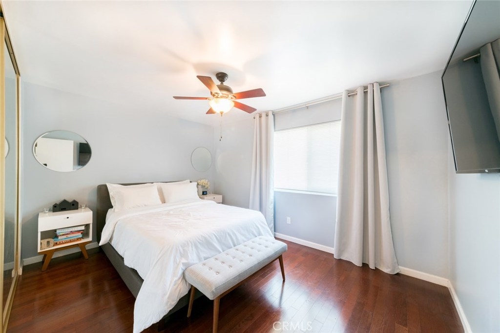 Welcome to the beautiful Park Orleans community and an fantastic upstairs unit. Whether this is your first home, or you are downsizing with distinction, take advantage of this move-in condition oasis! This home has hardwood floors, dual-pane windows, recessed lighting and fresh paint. Park Orleans is nearby to incredible shopping, dining and local entertainment. A few attractions include Old Towne Orange, Hart Park, and Main Place Mall. In addition, there is a bike trail with a connected entrance to the complex for biking/walking/running. There's a sparkling community pool and spa, beautifully landscaped grounds, close freeway access to the 22,5,& 57 freeways. Call today for a showing!