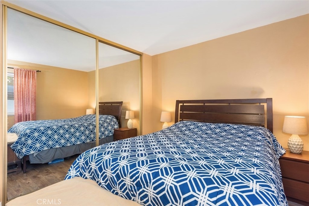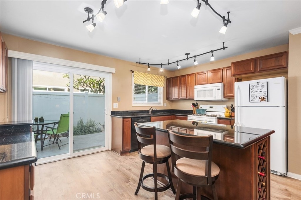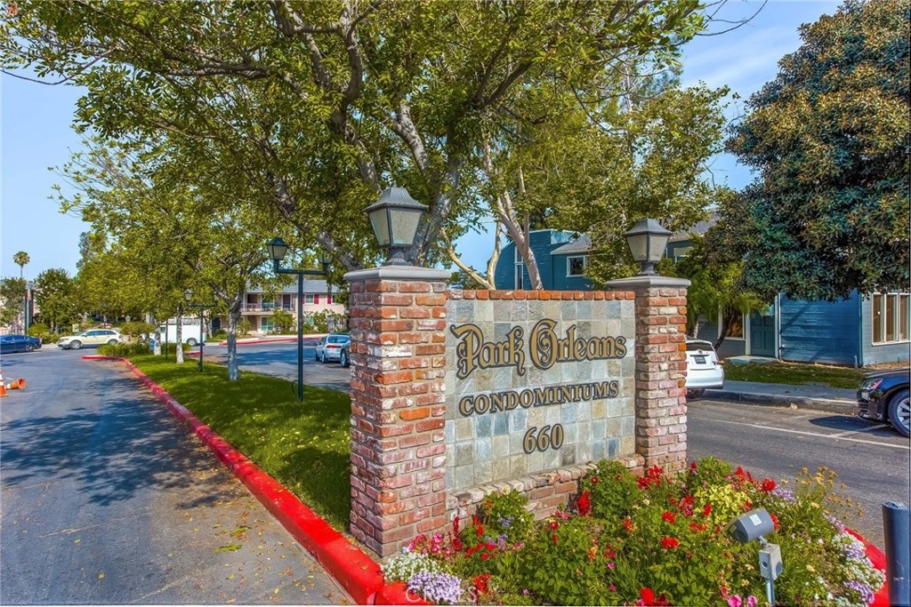Welcome to your new home in desirable Park Orleans! Beautiful lower unit in quiet interior location with lovely views, move-in ready, front porch, private back patio, spacious open kitchen has granite counters, island with seating and built-in wine rack, lots of storage, built-in desk area, gas cooktop, refrigerator, dining area, new flooring thruout, bath has tub/shower, master has mirrored wardrobe doors, window blinds, new interior doors, one-car detached garage, located across from Hart Park and close to Old Towne Plaza!