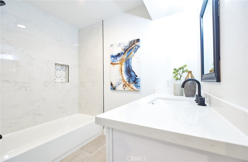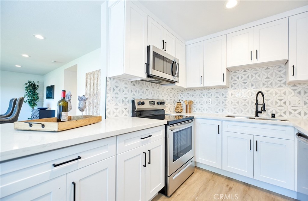 Stunning Remodel! Custom Designed Home in the Pinewood Condominiums. Turnkey with quality finishes. New dual pane windows and interior doors. All new cabinetry in kitchen and bathrooms, designed marble mosaic backsplash, lovely Marble look quartz countertops, new stainless steel appliances, Luxury Vinyl floors, newly tiled bathrooms, and showers, and designer finishes throughout. The updated kitchen is open and bright with a peninsula and breakfast bar. Freshly painted interior with contemporary paint colors, newly installed baseboards, and fully remodeled master suite and bathroom. The master suite features a newly tiled shower with subway tile and marble mosaic floor accents. Full-size guest bathroom newly remodeled. Perfect living room space with lots of natural light. Enclosed patio in front with room for seating area and BBQ. The home also has full HVAC throughout and a New Water Heater. Shows like a model home!
