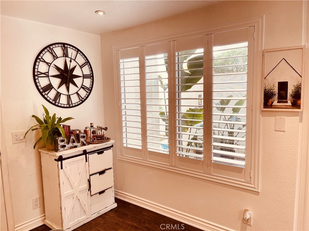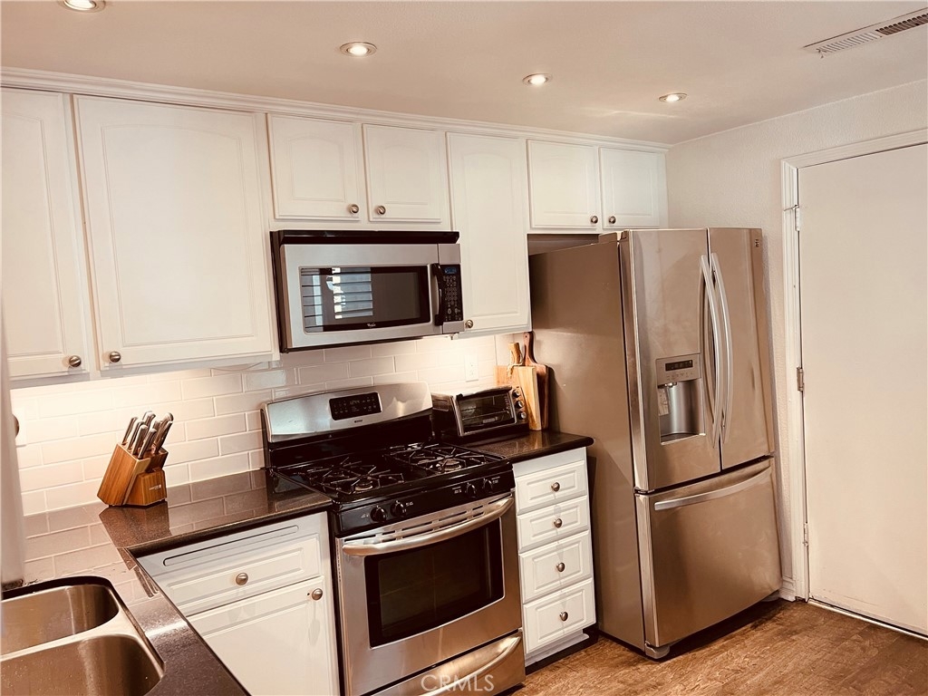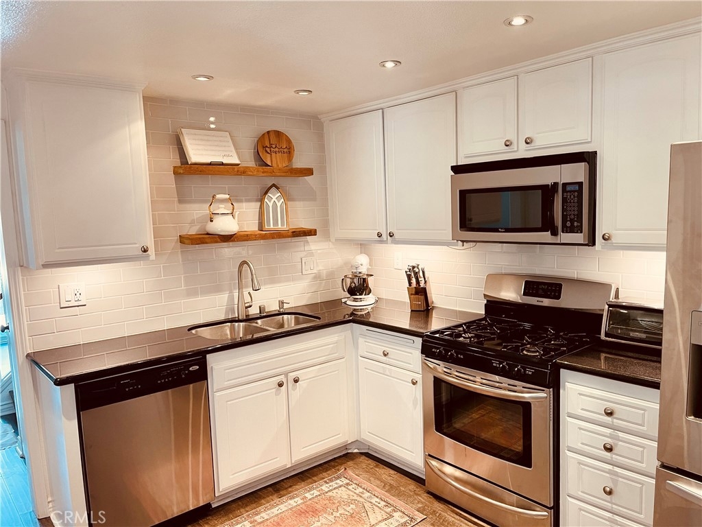 Beautiful "Pride of Ownership" 2 bedroom/2.5 baths townhome in the prestigious community of guard-gated Rocking Horse Ridge. These townhomes rarely come on the market and are situated amongst million dollar homes nestled in the hills of East Orange. This remodeled and designer looking level-entry home is move-in ready, with laminate wood floors, wood plantation shutters, natural carpet upstairs, recent interior paint, newly remodeled kitchen with subway tile backsplash, all new light fixtures including recessed lighting, updated bathrooms including new toilets and faucets. The kitchen offers granite counter tops with white cabinetry, a stainless steel gas stove, microwave & dishwasher, pantry and eating area. The adjacent family room features a cozy fireplace, vaulted ceilings, dining area and picturesque windows offering lots of light. Relax and enjoy OUTDOOR LIVING in your private wood deck with gas hookup for your BBQ, views of Orange Hill Restaurant and city lights. Imagine having your first cup of coffee on the patio as you watch the sun rise over the hills! The upstairs Master Suite has two mirrored closets, an updated bathroom with tub/shower combo, two sinks and new decorator lighting and mirror. The hall and powder bathrooms are also newly updated and stunning. You can access the two car attached garage with laundry hookups straight from the kitchen. cul-de-sac driveway. Rocking Horse Ridge offers a pool/spa/bbq area nearby. CLOSE TO GREAT SCHOOLS, IRVINE PARK AND PETERS CANYON. One look and you will fall in love! Welcome home!!!