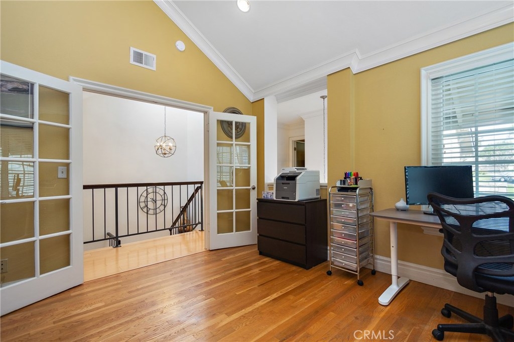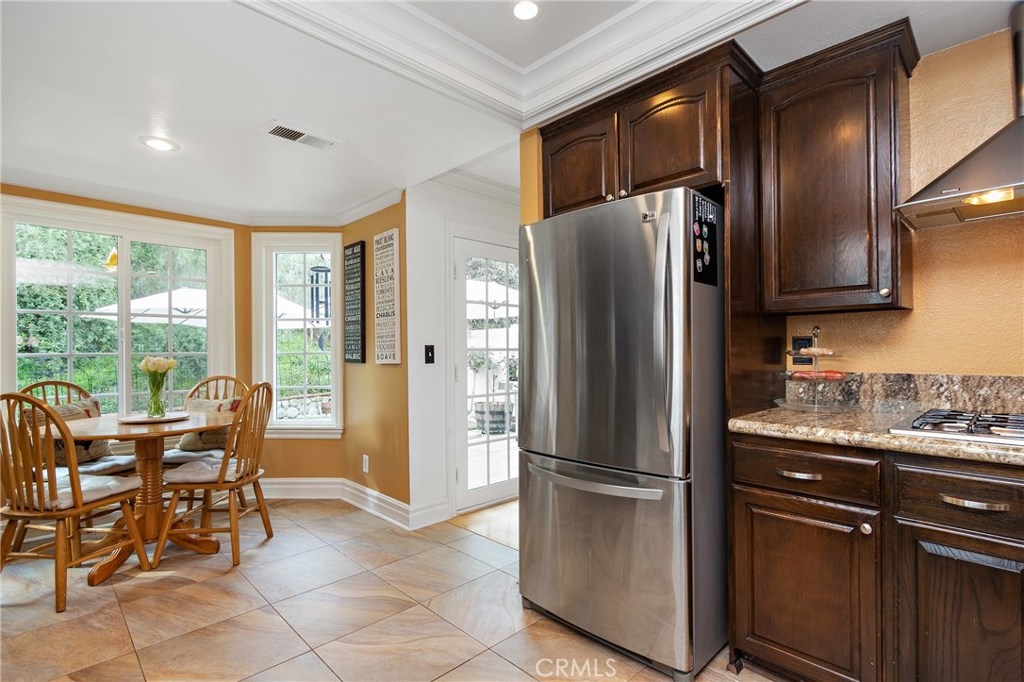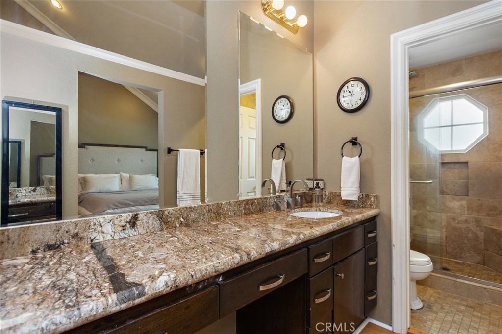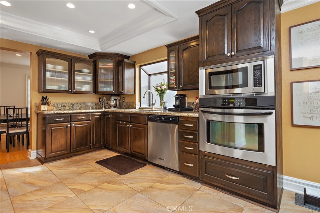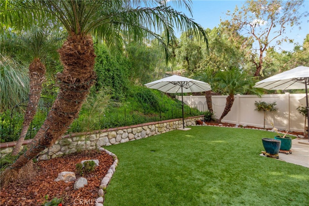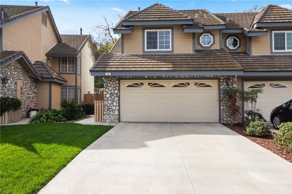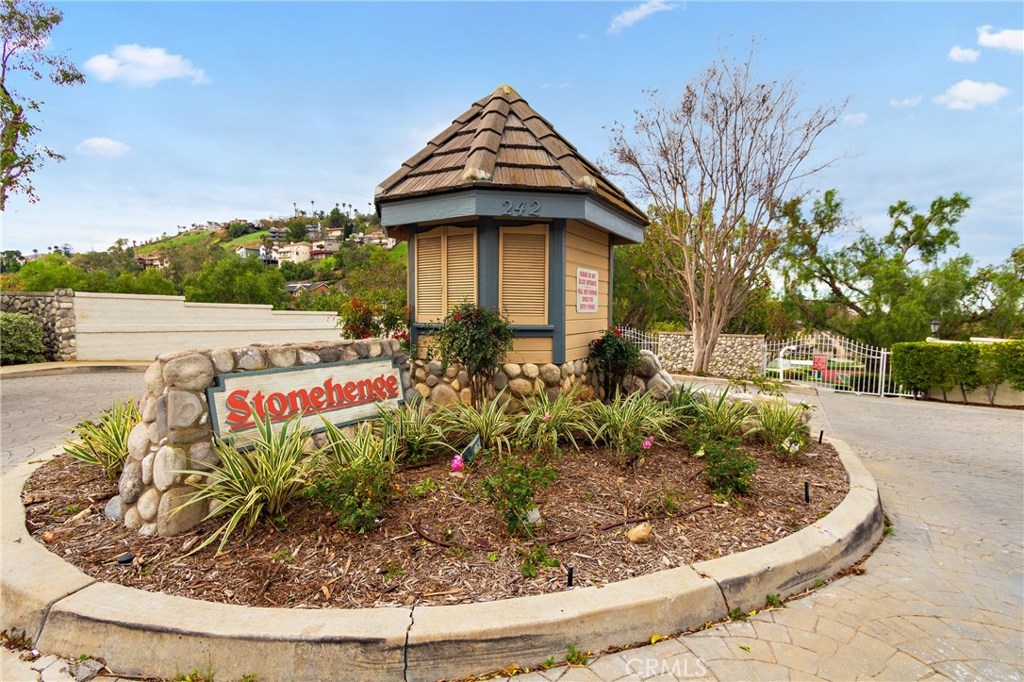 True pride in ownership is shown in this beautifully updated home in the gated community of Stonehedge in Orange. Upon entering the home you are greeted with soaring ceilings, and an abundance of natural light in the living room with tile fireplace, and new french doors that lead out to the private backyard with lush landscaping and pet turf. The living room flows into the dining room which is adjacent to the updated kitchen featuring espresso colored cabinets, tile flooring, granite countertops, and stainless steel appliances as well as a charming breakfast nook. This home features 3 bedrooms, 2 of which are master bedrooms with vaulted ceilings & walk-in closets! Additional features include custom paint, recessed lighting, original wood flooring in the main living areas as well as engineered wood flooring in the bedrooms, plus new dual pane windows throughout! HOA amenities include a sparkling pool, tennis court, grass areas and a gated entry.