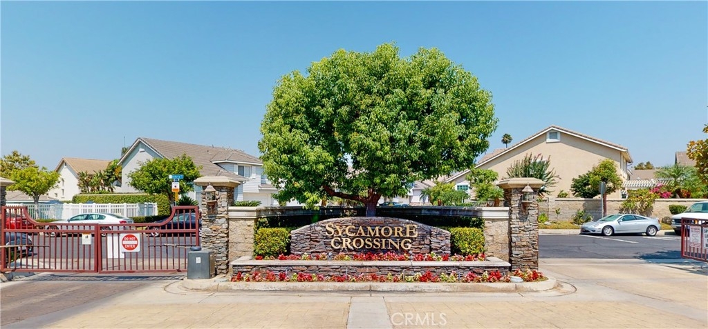 Once access is granted in the private gated community of Sycamore Crossing via a unique bridge with nearby bike & walking trails you will be a few steps to the community pool, spa, playground and close proximity to this lovely "Model 3 Home" displaying "Pride of Ownership". Charming curb appeal is enhanced by beautiful ledger stone welcoming you to this pristine 1,750 sq ft residence featuring 3 bedrooms & 2-1/2 bathrooms. With freshly painted interior walls throughout, once inside you are greeted with a beautiful mirror unique to this Model 3 Home plus marble entryway and dramatic vaulted ceilings making the living & dining rooms a striking place to live. The spacious kitchen offers porcelain tile flooring, maple cabinetry, gas range & oven, builtin microwave, an abundance of storage and counter space with a convenient island. The kitchen opens to a large breakfast dining area & family room offering a fanlight fixture & a redbrick, gas fireplace. Upstairs hosts three generous sized bedrooms all with vaulted ceilings including a spacious master suite with walkin closet. Secondary bedrooms are spacious with ample closet & storage space perfect for a home office & other family members. A second full size bathroom accompanies the secondary rooms. An upstairs laundry area completes the upper level. Come outside to enjoy the serenity this location affords with a custom patio & hardscape, lush tropical landscape & landscape lighting. Double car garage with custom cabinetry, storage & newer water softener. Must See!!