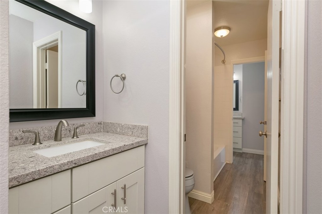 Fabulous, upgraded 3 bedroom town home in tranquil Tamarin community. This spacious, open living/dining = Great room boast smooth ceilings, quality laminate floors, crown molding and fireplace. Kitchen has been remodeled with maple cabinets, granite counter tops and recessed lighting. Baths have newer white vanities, quartz counter tops, newer light fixtures and mirrors. Master bedroom has his and hers closets and private sink/vanity area, additional 2 bedrooms upstairs are nice size. Additional upgrades include dual pane windows through out, beautiful quality laminate throughout the downstairs, mirrored wardrobe doors and full size washer/dryer hookups. Nice size covered patio w sky lights is perfect to enjoy the outdoors and has direct access to 1 of your private carports. Located in the back of the beautifully maintained and secluded small community with lush landscaping, large grassy areas, sparkling pool and spa, patio tables with umbrellas and full size BBQ s. There is also gate with direct access to riverbed for biking and hiking plus ample guest parking. Sought after Villa Park & Cerro Villa Middle School district. Close to The Village Orange Mall, parks, shopping, restaurants and close freeway access. Low association dues and No mello roos. These homes seldom come on the market and this one is a move in ready, turnkey home. 3D tour at https://tours.previewfirst.com/pw/104953#threed