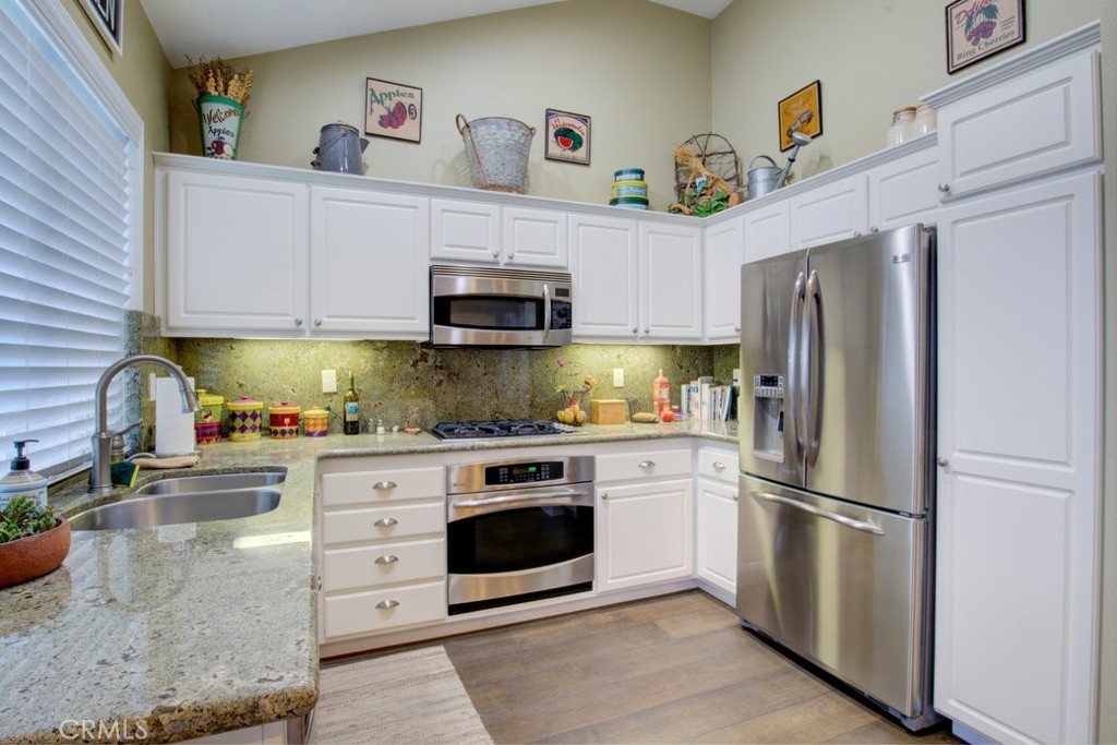 Welcome home! This wonderful unit offers over 1,400 square feet of living space including 3 bedrooms and 3 bathrooms. One bedroom and full bathroom located on the first floor, ideal for overnight guests. Upon entry you are greeted by the living room complimented by a fireplace and mantel, entertainment niche, crown molding and direct access to the patio with amazing views. The open and inviting kitchen boasts granite counter tops, stainless steel appliances, and plenty of cabinets for all of your storage and organizational needs. Upstairs you will find the master bedrooms showcasing a spacious en-suite with dual sinks and granite countertops. The Jr. master is also located upstairs with its own private bathroom. This property has an attached 2 car garage and private laundry room located inside. Community amenities include a pool, spa and MORE! Estimated tax rate is 1.096% You do not want to miss this opportunity, schedule your private showing today!
