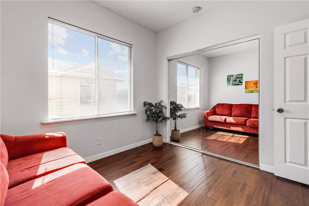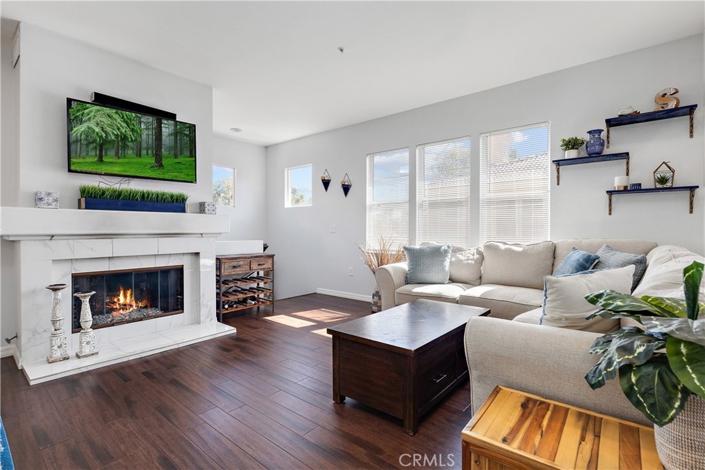 As you pull into The Bluffs at Belmont community, you will be overwhelmed by the beauty of the snow-capped mountain peaks filling the horizon. Within 1,018 sqft of stunning living space, this 2 bedrooms, 2 bathroom property offers plenty of space for everyone. Entering upon the private front doorstep, you will be amazed by the stunning wood flooring that follows you upstairs and throughout the entire condo. A large living room centers around a beautiful white fireplace, making it perfect for cold winter nights around the fire. Multiple windows allow light to flood inside and make the living space feel even larger. The entertainment space is entirely open, making it perfect for entertaining guests or enjoying a quiet night at home. The upgraded kitchen looks like it is right out of a magazine with the beautiful granite countertops and backsplash, which complement the white cabinetry and stainless steel appliances. An adjacent dining area, outfitted with a beautiful white, geometric lighting fixture, is perfect because it can fit a large table and opens to the balcony through sliding glass doors. This large balcony is a great place to unwind after a long day as you watch the sky fill with the beautiful colors of the sunset and catch a glimpse of the stunning views of mountain peaks. Back inside, the master suite is large enough to fit all of your furniture and still maintain a spacious feeling. Two separate closets allow you to have ample space for all of your clothes, and an en-suite bathroom features dual vanities with a beautiful black countertop and white cabinetry as well as a private room for the shower and toilet. The accessory bedroom is a great space for children or guests, or it could be used as an office or workout room. A secondary full bathroom corresponds with this bedroom and is perfect for guests. Finishing off the property is a laundry space hidden behind beautiful blue barn doors and large enough to hold a full-sized washer and dryer as well as an attached garage with epoxy flooring and enough space for a car and storage. The community offers a large pool and spa area with bathrooms and a shower as well as access to local trails. It is also within walking distance of Belmont Park. With attendance to award-winning California Distinguished schools and close proximity to some of the best dining and shopping, this property has everything you have been waiting for!