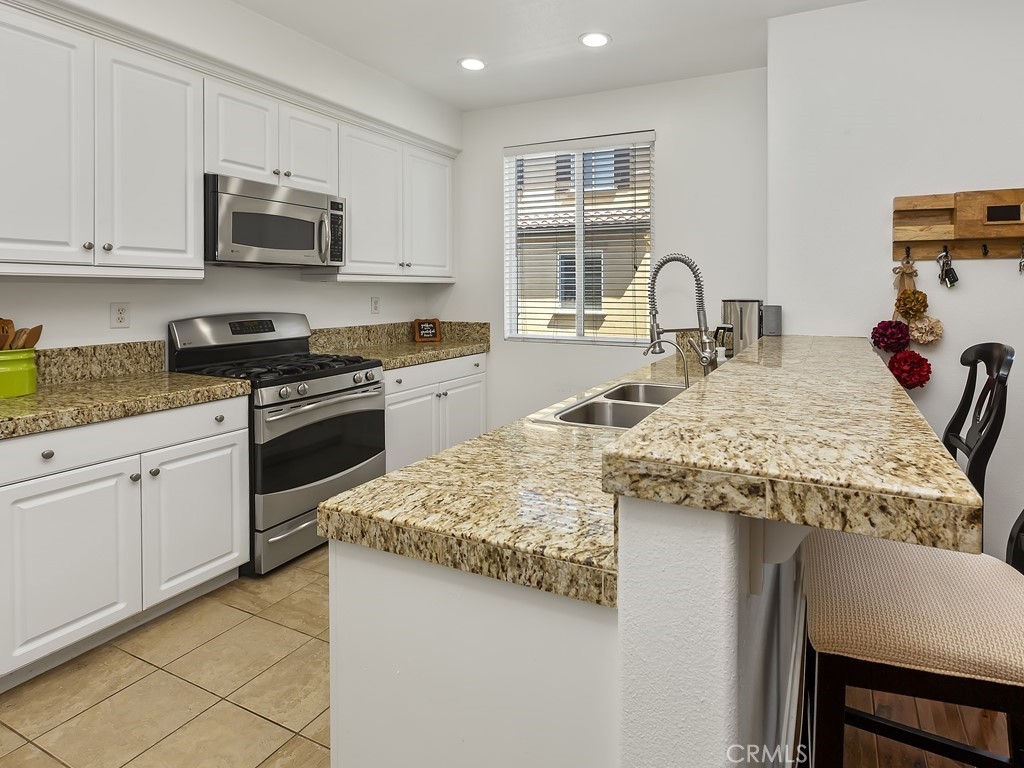 Gorgeous 3 bed, 3 bath townhouse in Riverbend! This spacious home is full of upgrades and ideally located in this desirable area of Orange County. Your guests will love the walk to your front door, complete with an ivy covered arch and treelined walkway, leading to the gated front yard, a perfect space to set up your grill and entertain or enjoy your coffee on the patio, with the half-bath conveniently located just inside. Walking up the stairs, you will find a beautiful living room with hardwood floor, large windows, and high ceiling, creating an open, inviting space. This level also opens to the attached 2 car garage, so you never have to worry about parking! Up a few more steps, you will find the open concept family room, kitchen and dining area, perfect for entertaining. The kitchen is a chef's dream with beautiful granite countertops, stainless steel appliances throughout, butler's pantry, and bar seating. On the final level of the house, you will find the 3 bedrooms, 2 full baths, and laundry room. All bedrooms feature ceiling fans, are spacious and perfect for any sized furniture, and the master bedroom features an enormous custom closet as well as a charming balcony! The home has a brand new furnace, reverse osmosis water system, and Nest thermostat, allowing you to live in comfort and free from any maintenance worries. The property is ideally situated - walking distance to the pool and HOA amenities, as well as walking distance to Olive Park and Steve Ambriz Memorial Park, which have playgrounds and sports facilities. Close to the 91, 55, 22 and 57, this is a very convenient community for getting anywhere in Orange County, Riverside, or Los Angeles quickly - you'll be in the center of the action in a home you will love!