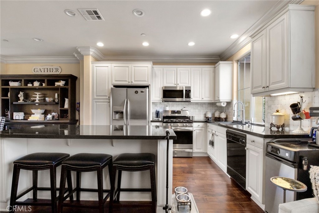 Beautiful townhome located in the desirable gated community of Serrano Heights, nestled in the hills overlooking beautiful Orange County. Enjoy the wide open floor plan, crown moulding, large center island, ?high ceiling living room with fireplace, master suite with walk-in closet, and shower and dual sinks in bathroom, 2nd bedroom has an on-suite bathroom.There is an additional powder room, a two car direct access garage and a loft office with built in desk, bookcase and cabinets No detail has been overlooked in this 2 bedroom, 2 1/2 bath town home. The Association Offers Numerous Green Belts, Guest Parking, And Convenient Access to Neighboring Parks and Schools. Elementary School District is the Blue Ribbon winning Anaheim Hills, which is within walking distance.