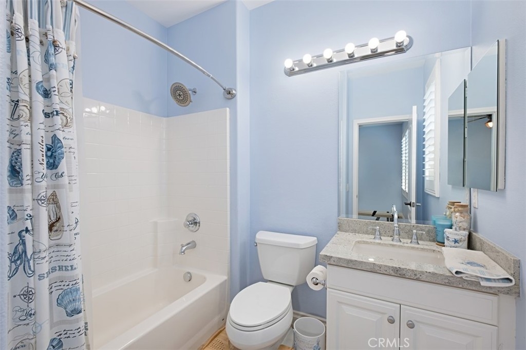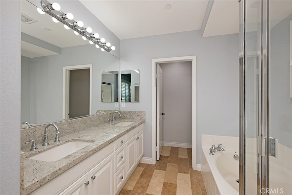 Welcome to the exclusive and acclaimed community of Tremont! Nestled in the hills of Serrano Heights, this gated community is centrally located between great schools and beautiful parks. Upon entry, the hardwood floors spread throughout the living room. Immediately, you will notice the beautifully upgraded fireplace, wrapped in glamorous stacked stone. The open concept kitchen boasts granite countertops, matching backsplash and newer cabinetry. The kitchen is also equipped with stainless steel Frigidaire appliances. The open kitchen area is versatile and is great for hosting parties and other events. You will find an inviting loft area equipped with a built-in office. The master suite presents a walk-in closet and a beautiful private bathroom. You will discover the master suite comes with fully adjustable cove lighting as well. The master bath comes with a deep soaking tub, separate shower, double sinks and a private toilet. The second bedroom and the laundry room are located upstairs as well. The home features hardwood flooring and travertine tiles. You will love the plantation shutters, recessed lighting and crown molding. The attached garage is cleanly coated with epoxy flooring. This is one of the few homes inside the Tremont community that opens up into the beautiful courtyard. This home is also walking distance to award-winning Anaheim Hills Elementary within a "Blue Ribbon" school district!
