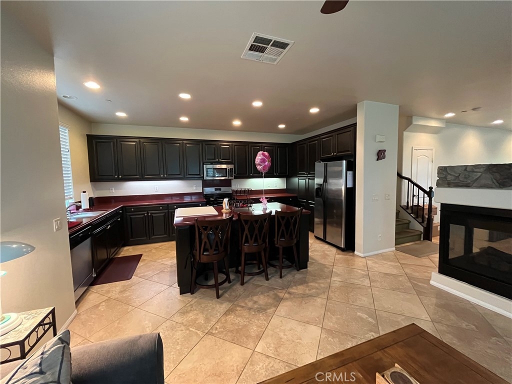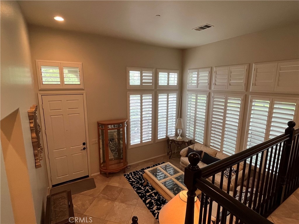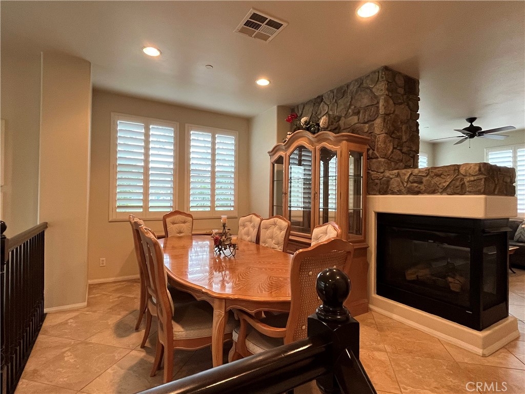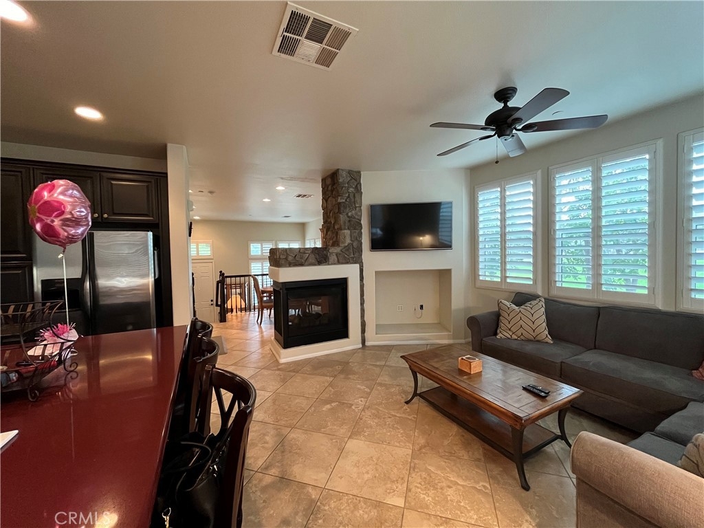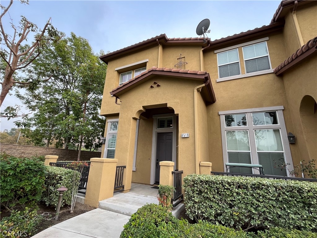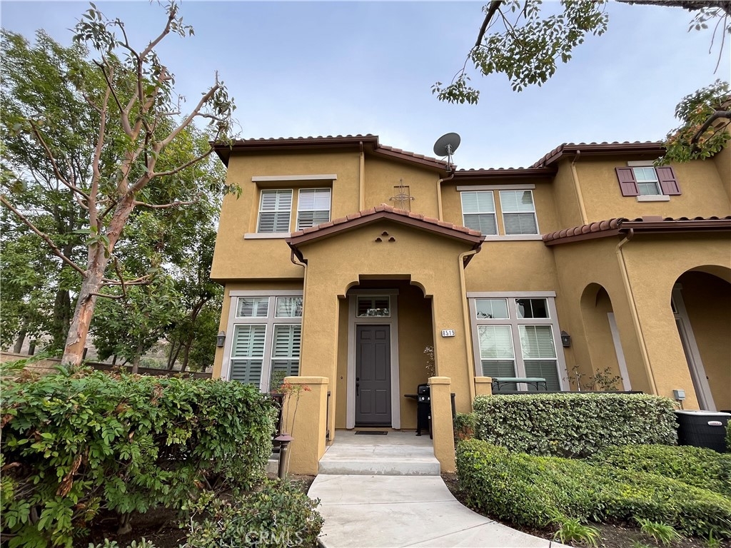 This Beautiful Serrano Heights home is located in the gated community of Tremont and is ready for its new owners! This premium private end unit location home features 3 bedrooms 2.5 Bathrooms. A charming, inviting front porch that overlooks the green belt greets you and this corner location allows an abundance of natural light into the home for brightness throughout the day. With a dramatic entry that opens into the formal living room, the vaulted ceiling guides you through this beautiful, comfortable home. Step up to the formal dining room that features a cozy dual-sided fireplace which adjoins the family room & kitchen creating a lovely living area. The Gourmet kitchen features granite countertops, a generous center island with built-in eating area, stainless steel appliances, & tons of cabinetry. A lovely master bedroom with walk-in closet, and master bathroom that features a separate shower, soak-in tub, & dual sink vanity. Home features 2 additional secondary bedrooms down the hall, an individual laundry room, beautiful upgraded plantation shutters throughout every room in this beautiful home, recessed lighting, & 2 Car Garage with direct access. This home is located within walking distance to Anaheim Hills Elementary. Conveniently located next to the park, guest parking and access to walking/hiking trails!