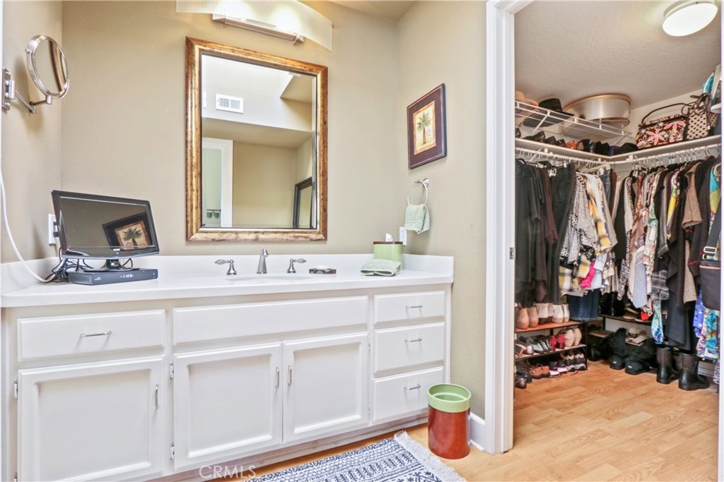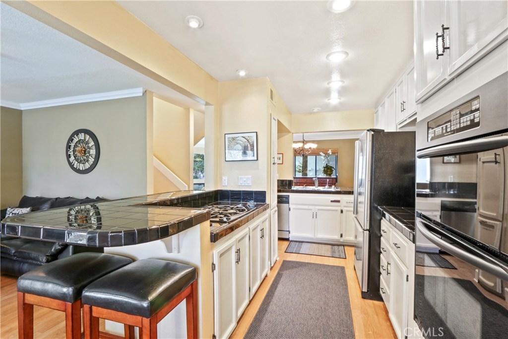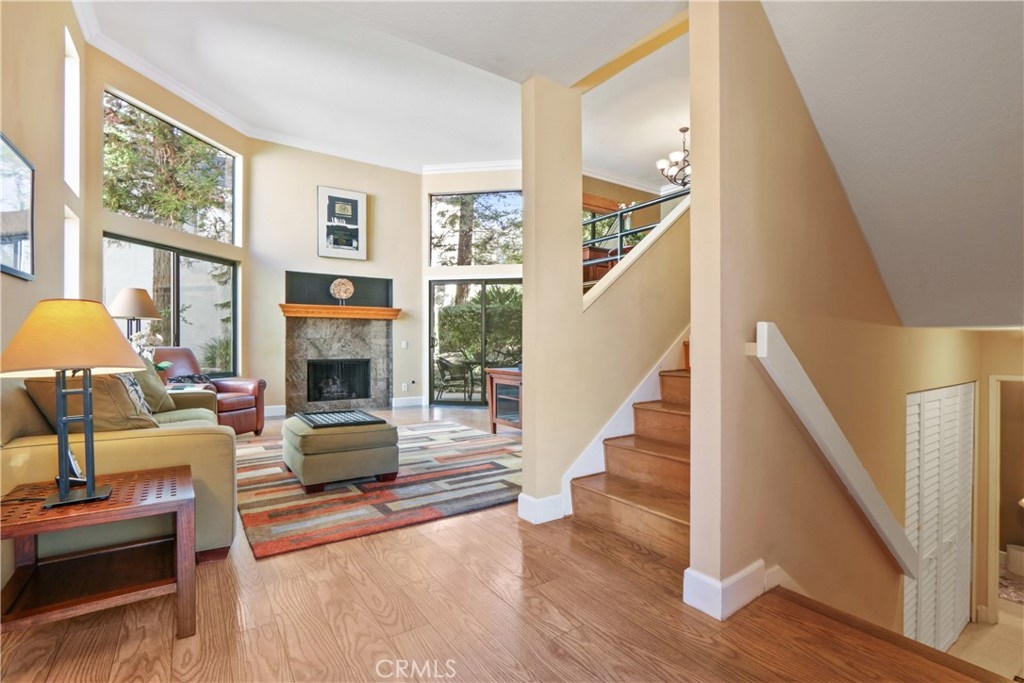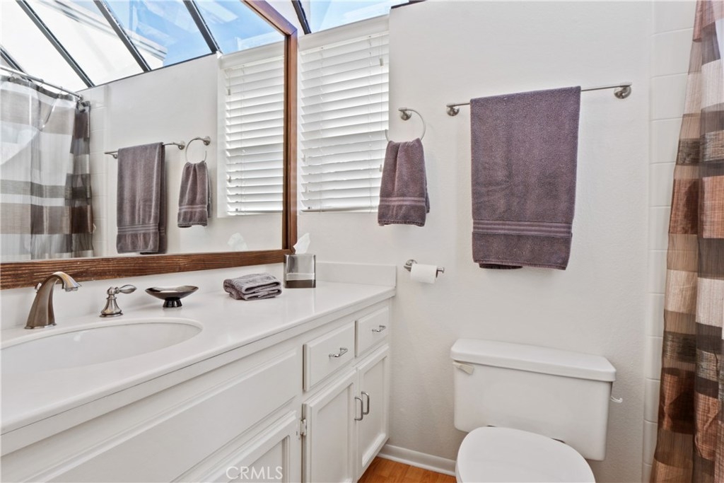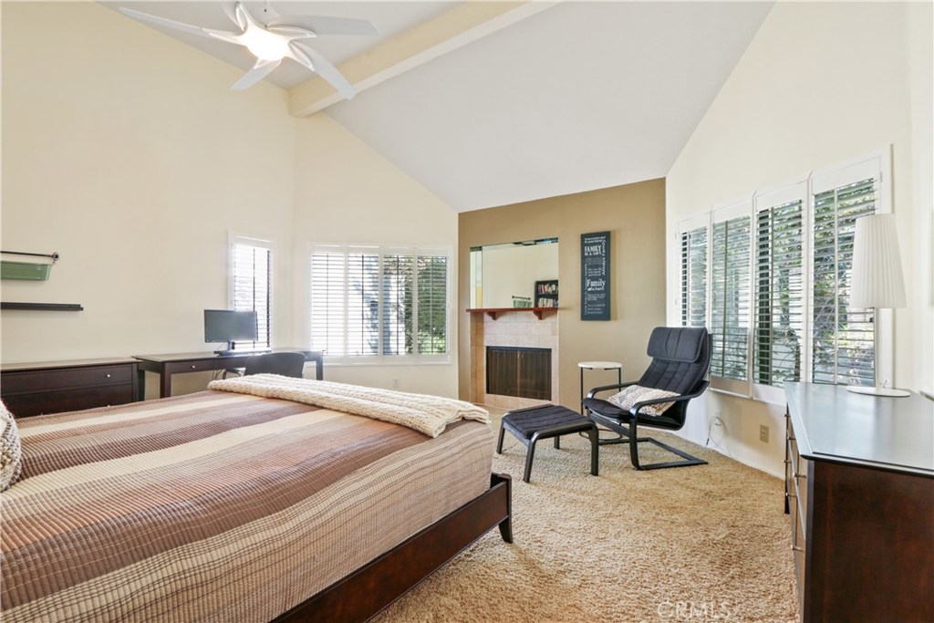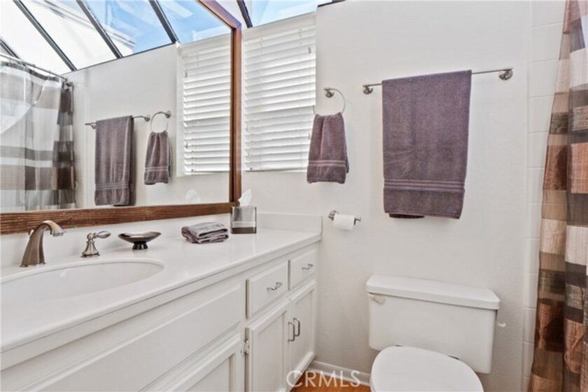 Must see this large and open duplex style condo in the peaceful surroundings of Orange Hills. Fantastic premium end unit location with steam off the rear patio. Must see the customized kitchen that has gas top cooking, extra cabinetry,added lighting, ceiling fan and opens to family room. Formal living room with soaring vaulted ceiling, fireplace and access to waterside patio, formal dining room, large stairwell landing makes great home office space. Huge master suite with dramatic vaulted ceiling and romantic fireplace, skylight, window shutters, ceiling fan, walk in closet and large oval tub/shower. Second bedroom also has its own bathroom,ceiling fan and window shutters. Indoor side by side inside laundry, lots of windows, 2 car direct access garage. Sunny balcony off family room, 2 car attached garage, tons of storage-including massive space in downstairs bathroom., walk paths and hiking trails close by. Enjoy convenient access to toll roads, Peter's Canyon, Irvine Regional Park and 55/91 freeways. Resort style pool, spa and barbecues along with another pool and spa just for Stream House residents. Best of all no Mello Roos taxes. *Value Range Price $498,000-$528,000*