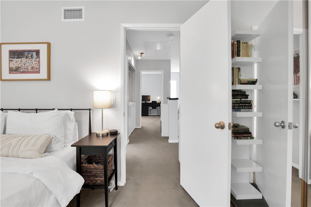 Welcome to your new home! Exceptional location, deep within the tract, allowing plenty of parking for you and your guests. This two story, 2 bedroom, 1.5 bath, smooth flowing, open floor plan home has it all. The downstairs features plenty of living space, a full kitchen with granite counters and stainless steel appliances, an eating area, and opens to an outdoor pavered patio with its own large outdoor closet and new vinyl back fence. The upstairs features the master bedroom with wall to wall closet space, mirrored wardrobe doors, and a ceiling fan. The second bedroom is spacious with mirrored closet doors and a ceiling fan. The full size laundry area is also upstairs, so no carrying laundry up and down the stairs! There is direct access to attic space for plenty of extra storage, and EVERY window has been replaced and upgraded with new vinyl, Energy Star, dual pain windows, including the glass sliding door leading out to the patio. The reserved covered parking spot is right outside the front entrance. The homeowners association provides three pools, one with a club house for your big parties, inground spas, and common areas. This is the “Resort Style Living” we all desire with swimming, walking, hiking trails, biking, shopping, restaurants, and most anything else you are looking for.