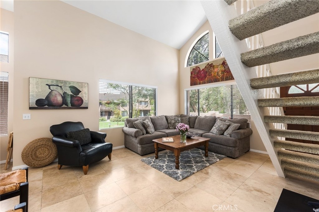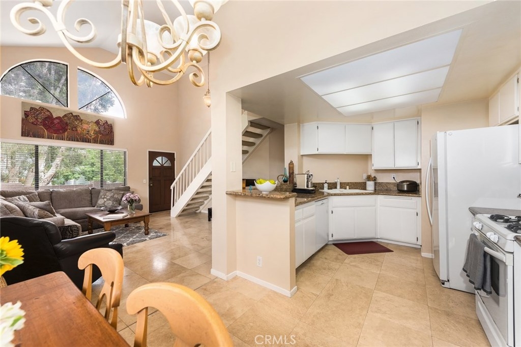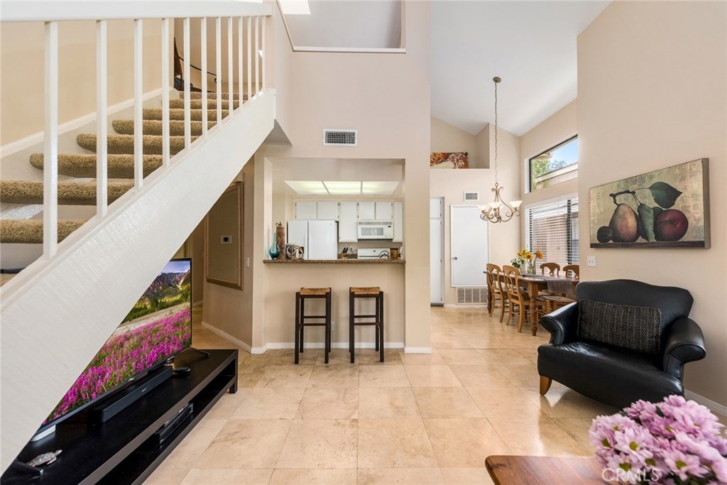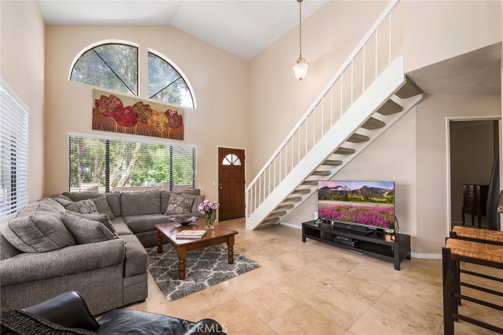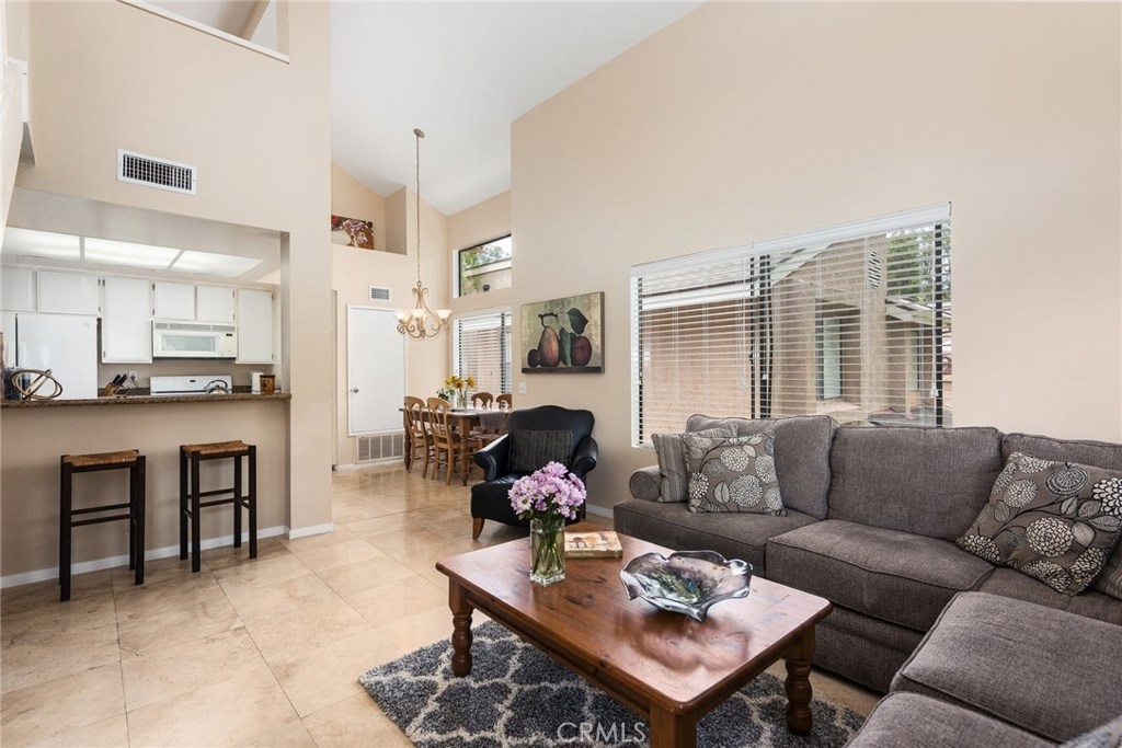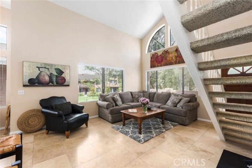 You're going to fall in love with this gorgeous end-unit condo in the sought after Community of Villeurbanne. The newly painted living room features vaulted ceilings & expansive windows to keep this home bright with natural light. An open floor plan features a roomy kitchen with freshly painted white cabinets & white appliances. A cozy dining area plus a breakfast bar gives you plenty of room for seating at meal time. Beautiful travertine floors throughout the living room & kitchen. Enjoy the spacious loft on the second level which has an open view to the living room below. Talk about a perfect escape for an office or an art studio! The seller has enjoyed this loft for work & play. A very desirable floor plan with dual master suites & each have a large closet with mirrored doors. Laundry days are easy with a convenient indoor laundry which is tucked away in a closet & includes a full-sized stacked washer/dryer. A front porch overlooks the lush greenbelt plus has a view of the sparkling community pool. Central air conditioning will keep you cool on those hot summer days. H.O.A. dues includes water & trash. Nestled in the Orange Hills, enjoy the breathtaking views while you bike or walk the many trails across the street & in the El Modena open space. Nearby is Peter's Canyon Park, Irvine Regional Park, the Toll Road, and some of the best restaurants in the city of Orange. For the adventurous, hike to the top of the hill and experience the stunning view at sunset.