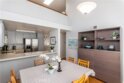 Great end unit, upper level, condo with a great floor plan and room configuration. The first thing you notice is the large open-air patio, great for entertaining, dining al fresco, or simply relaxing. Open the front door and you enter the well-proportioned living room with vaulted ceilings, 2 full sized windows, upgraded flooring and loads of room. A separate formal dining room off the kitchen boasts loads of natural light and a great central gathering space with additional counter sit up space facing the kitchen. Two full sized bedrooms with vaulted ceilings, each with 3 door full sized closets provides plenty of space for even the most extensive wardrobe selections. The master bedroom features a fully upgraded ensuite bathroom with dual sink vanity and large glass and tile enclosed shower. The remodeled second bathroom offers a shower over soaking tub. Compose that perfect home office, additional media or welcoming guest room in the upstairs loft which has 2 great skylights and additional storage closet. The central location of this home is ideal, making for easy commutes to either the mountains or down to the great SoCal beaches. You’ll love the proximity to great local parks, nature walking trails, a quick drive down 55 freeway to John Wayne Airport for your travel needs and great local shopping and dining. Central air conditioning, freshly painted, interior laundry room, private garage and more.