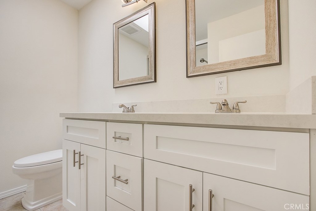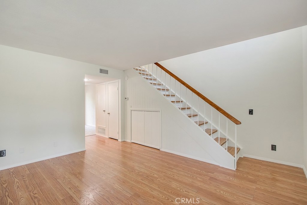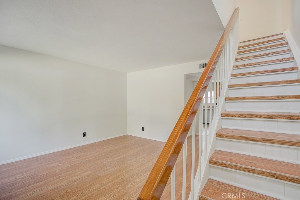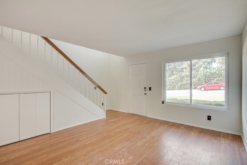 Upgraded condo in the Villeurbanne community in the heart of Orange. Rich laminate wood floors, light-catching windows, and fresh paint compliment the bright and open floorplan. Enter into the inviting Living Room that leads to the sumptuous kitchen that is well appointed with wood cabinets, breakfast nook and sliding doors to the private back patio. Upstairs, the Master bedroom features a large closet with mirrored doors and direct access to the full bathroom. The secondary bedroom is generously sized and is adjacent to the full bathroom and laundry closet. Relax in the private brick-lined back patio and relish in the tranquility of nature with hill views and the peaceful sounds of doves, quails, roadrunners and hummingbirds. Enjoy the resort-like amenities with a community pool, spa and hiking trails. This is a perfect home for relaxing or entertaining friends!