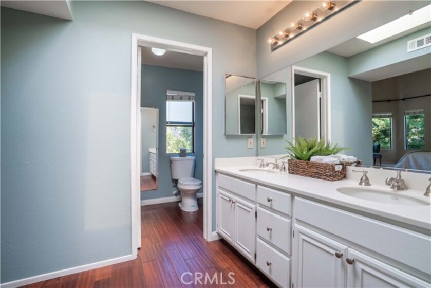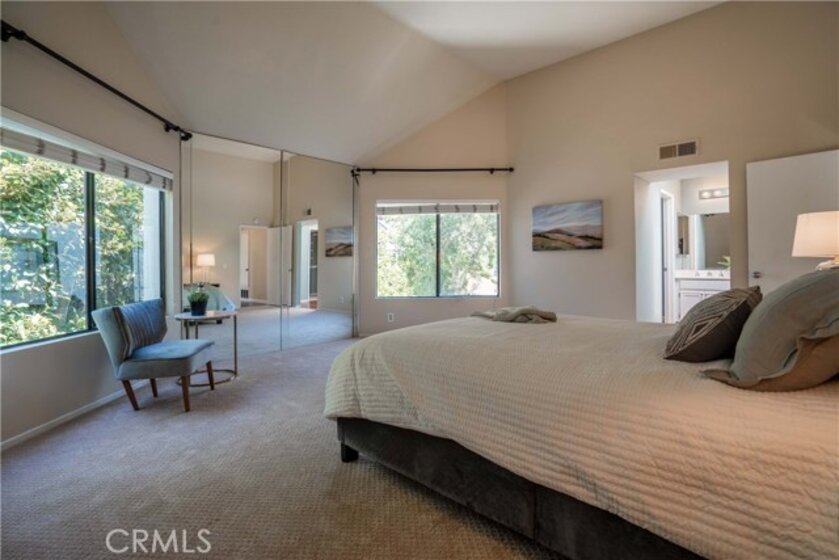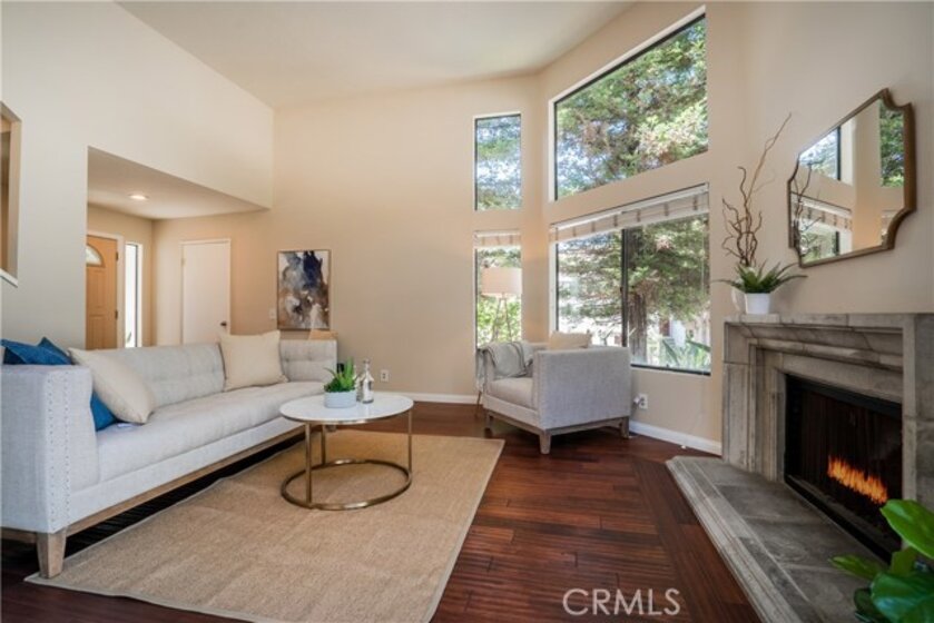 This impressive remodeled condo is nestled in the quiet community of Villeurbanne in the hills of Orange on a prime corner lot and is a must see! Its popular and comfortable floor plan enjoys two master bedroom en-suites, two and one-half bathrooms and 1,683 square feet of living space. Laminate wood floors flow throughout the lower levels while neutral carpet can be found in both upstairs bedrooms. The living room with soaring ceilings is warmed by a handsome fireplace and is ideal for everyday living and entertaining. The eat-in kitchen has a modern feel with stainless appliances and granite counters and opens to the dining room on one side and the comfortable family room on the other. Large windows flood the interior with natural light and create an indoor and outdoor feel while outside you’ll enjoy al fresco dining on either of your two peaceful patios; one with mountain views. Adding to the home’s appeal is the two-car attached garage, laundry area and the wonderful community amenities Villeurbanne offers which include a pool and spa, clubhouse, bbq area and walking trails. Welcome Home!