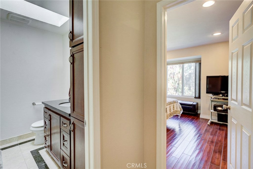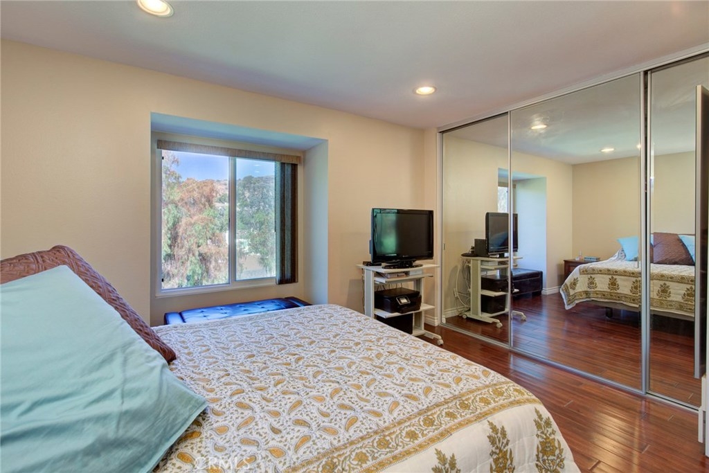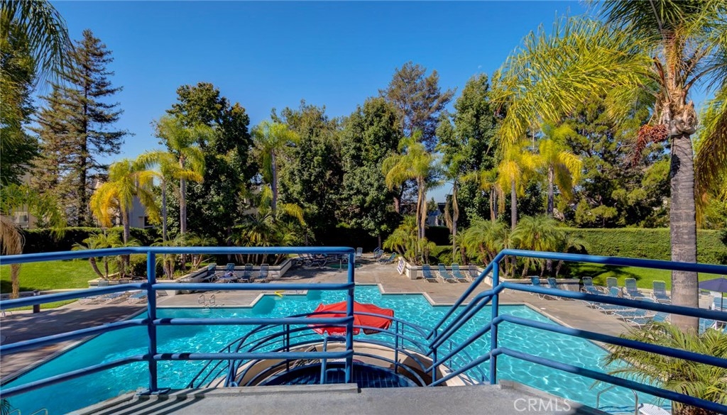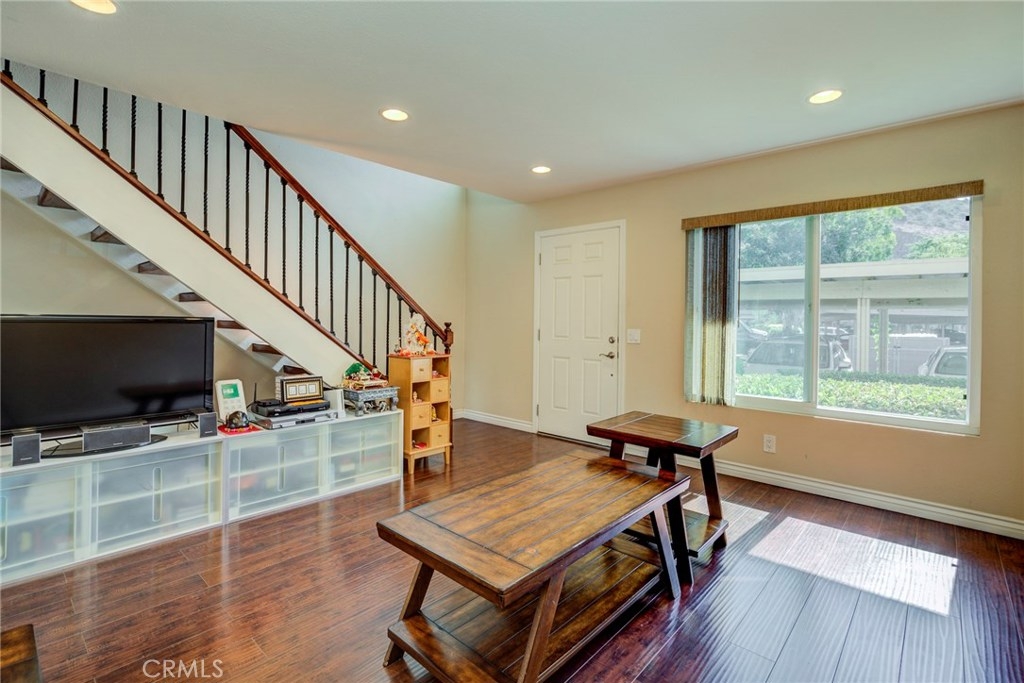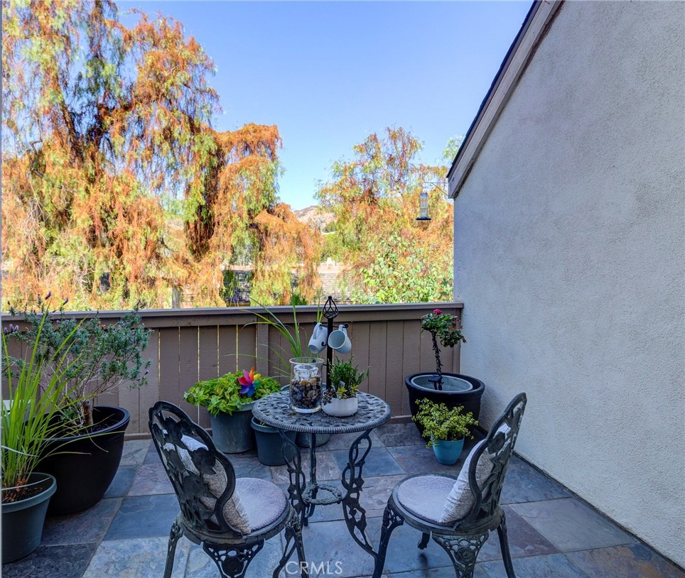 Welcome to the FHA-approved Creekside HOA at Villeurbanne. Nestled in the hills of Orange, this highly-coveted, picturesque environment will steal your heart! Resort-style HOA features pools, spa, barbecues, and a club house. Just outside, you are surrounded by nature and hiking trails. Enter this luxurious townhome through the well-maintained and lushly landscaped common grounds. As you enter, you walk into a light and bright open living room, with wood floors, recessed lights, and an open staircase. This unit is unique for the HOA, as the downstairs powder room has been converted to a 3/4 bath with a beautiful updated shower with travertine and decorative tile. Continue on into the kitchen and dining area, where you will immediately be drawn to the greenery right outside your window. This unit sits high above other units, so as you look out on your balcony, you see trees and the hills of Orange as the backdrop, a breathtaking sight. The large balcony has plenty of room for a barbecue, outdoor dining set, or just some space to relax in the peace of your surroundings. Also features and outdoor storage closet. The kitchen features granite countertops, cherry cabinets, and matching appliances. Upstairs, you will find wood floors all throughout, with two large bedrooms, a closet for your washer and dryer, a luxurious full bathroom, and a large master bedroom with wall to wall closet space. This unit also features updated windows and doors for sound and energy efficiency.
