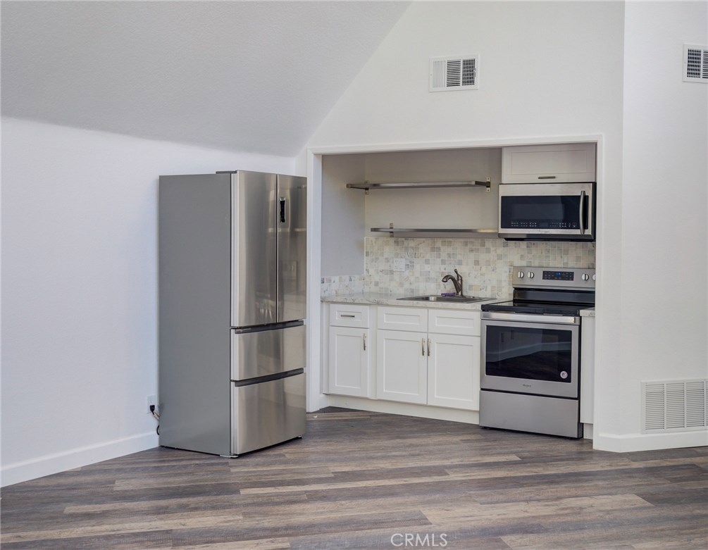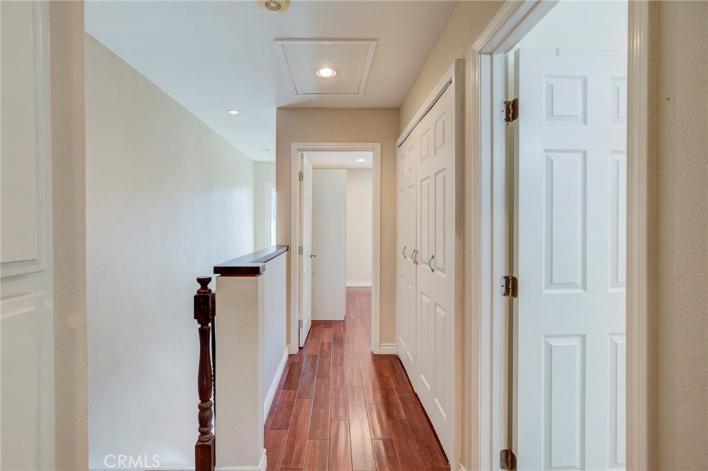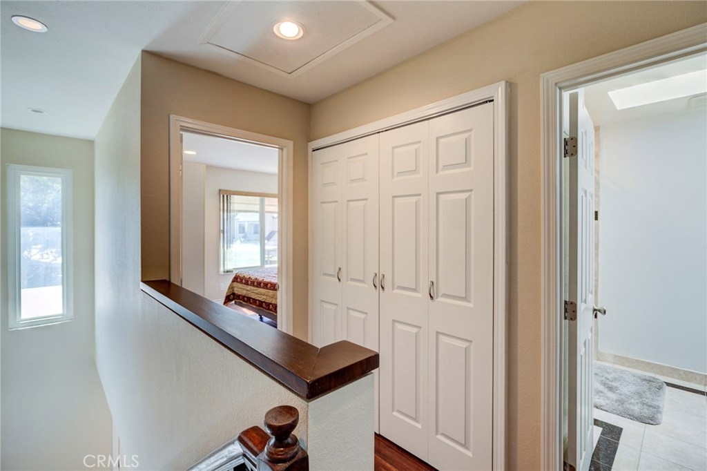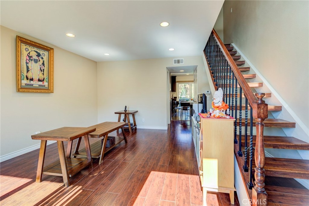 Welcome to the FHA-approved Creekside HOA at Villeurbanne. Nestled in the hills of Orange, this highly-coveted, picturesque environment will steal your heart! Resort-style HOA features pools, spa, barbecues, and a club house. Just outside, you are surrounded by nature and hiking trails. Enter this luxurious townhome through the well-maintained and lushly landscaped common grounds. As you enter, you walk into a light and bright open living room, with wood floors, recessed lights, and an open staircase. This unit is unique for the HOA, as the downstairs powder room has been converted to a 3/4 bath with a beautiful updated shower with travertine and decorative tile. Continue on into the kitchen and dining area, where you will immediately be drawn to the greenery right outside your window. This unit sits high above other units, so as you look out on your balcony, you see trees and the hills of Orange as the backdrop, a breathtaking sight. The large balcony has plenty of room for a barbecue, outdoor dining set, or just some space to relax in the peace of your surroundings. Also features and outdoor storage closet. The kitchen features granite countertops, cherry cabinets, and matching appliances. Upstairs, you will find wood floors all throughout, with two large bedrooms, a closet for your washer and dryer, a luxurious full bathroom, and a large master bedroom with wall to wall closet space. This unit also features updated windows and doors for sound and energy efficiency.